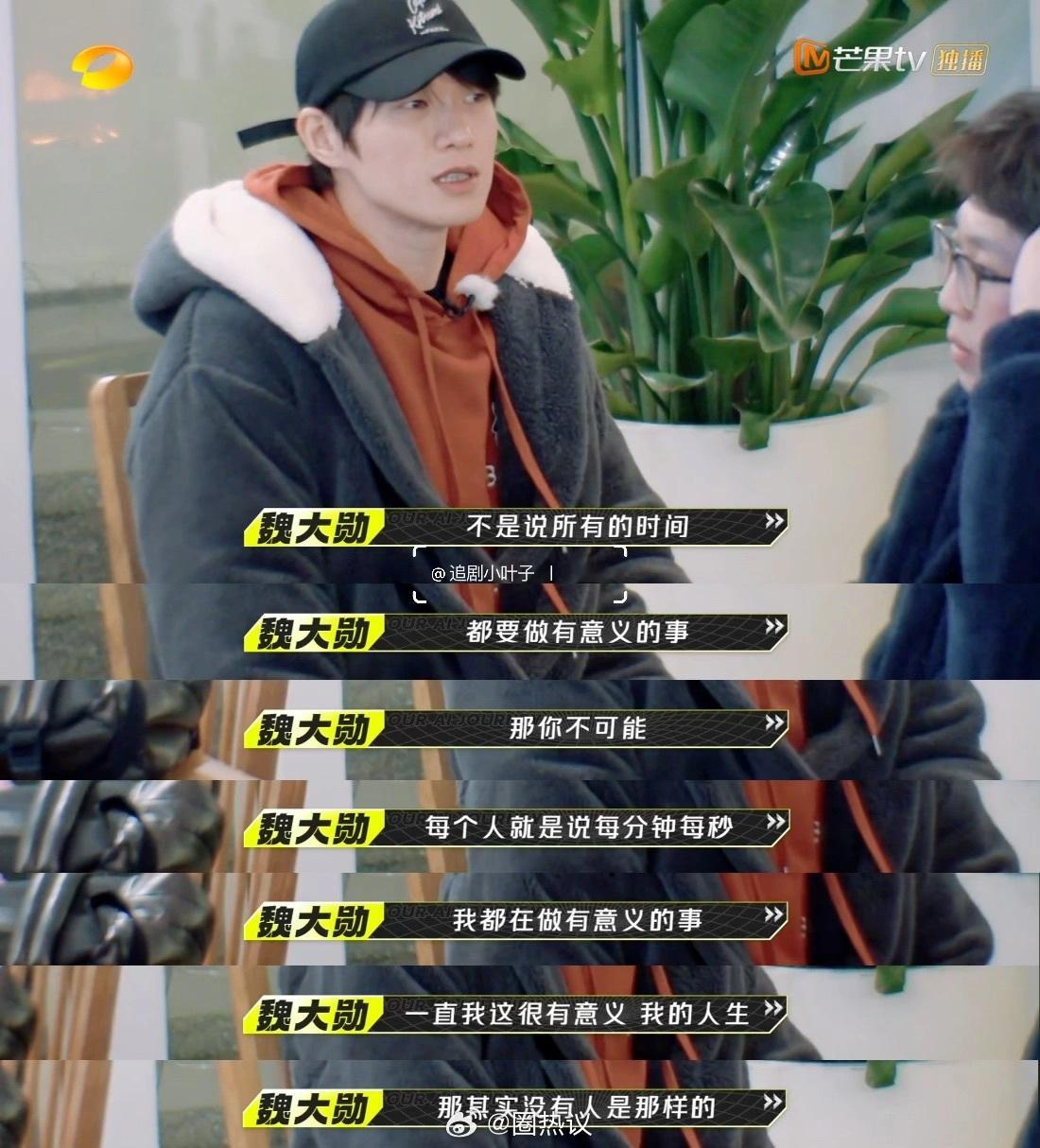 但魏大勋说,其实人不可能每分每秒做的事都有意义,没有人是这样的。他就很享受自己在家躺着的时刻。