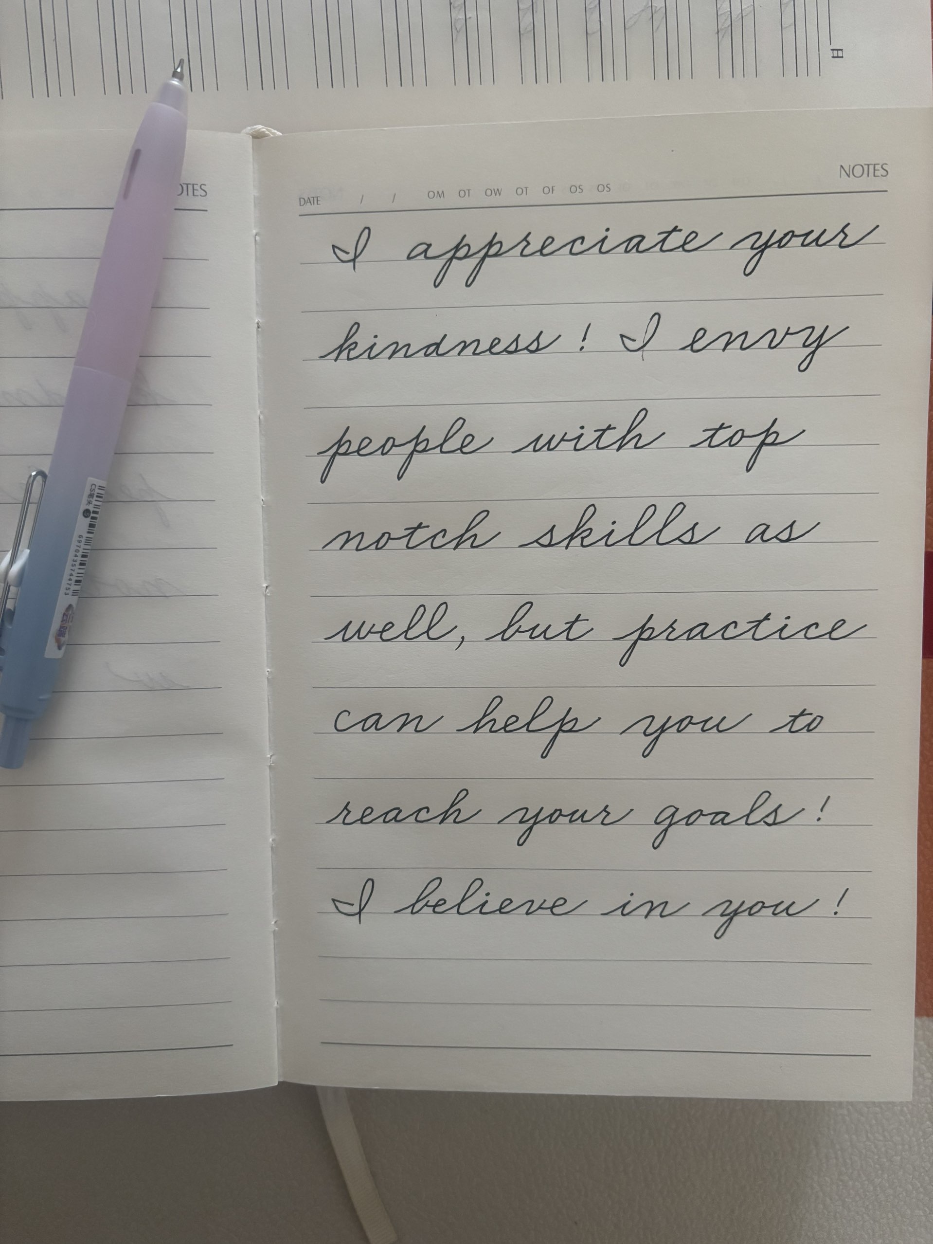 我很感激你的善意!我也羡慕那些拥有顶尖技能的人,但是练习可以帮你达到目标。我相信你!