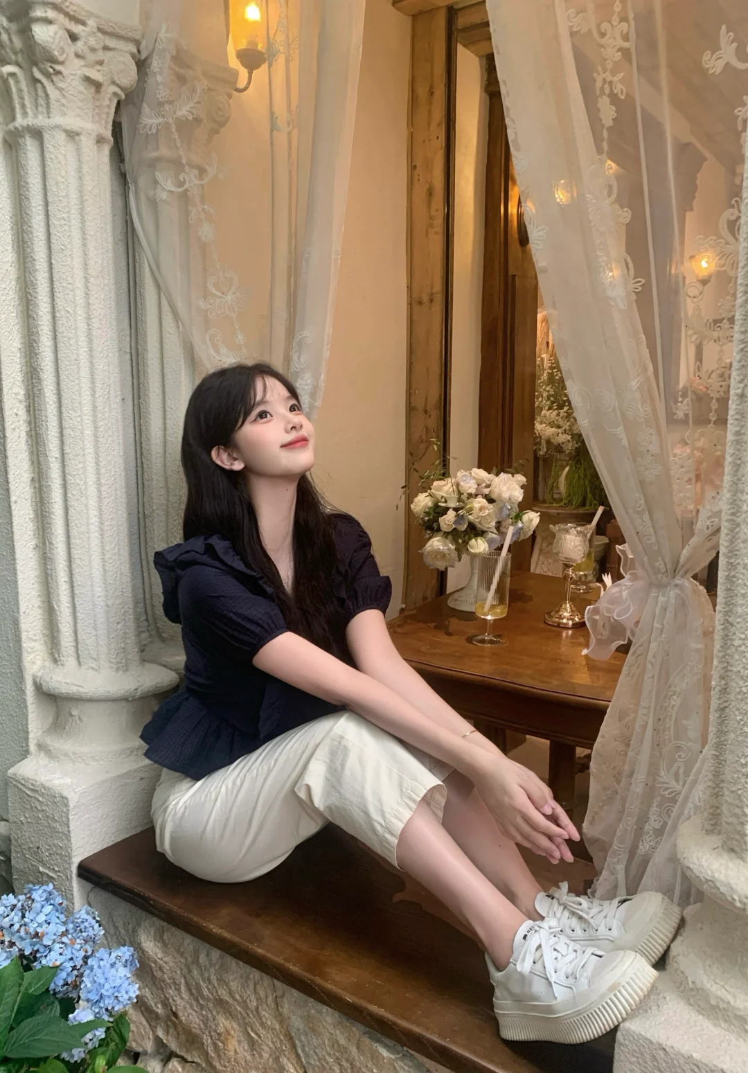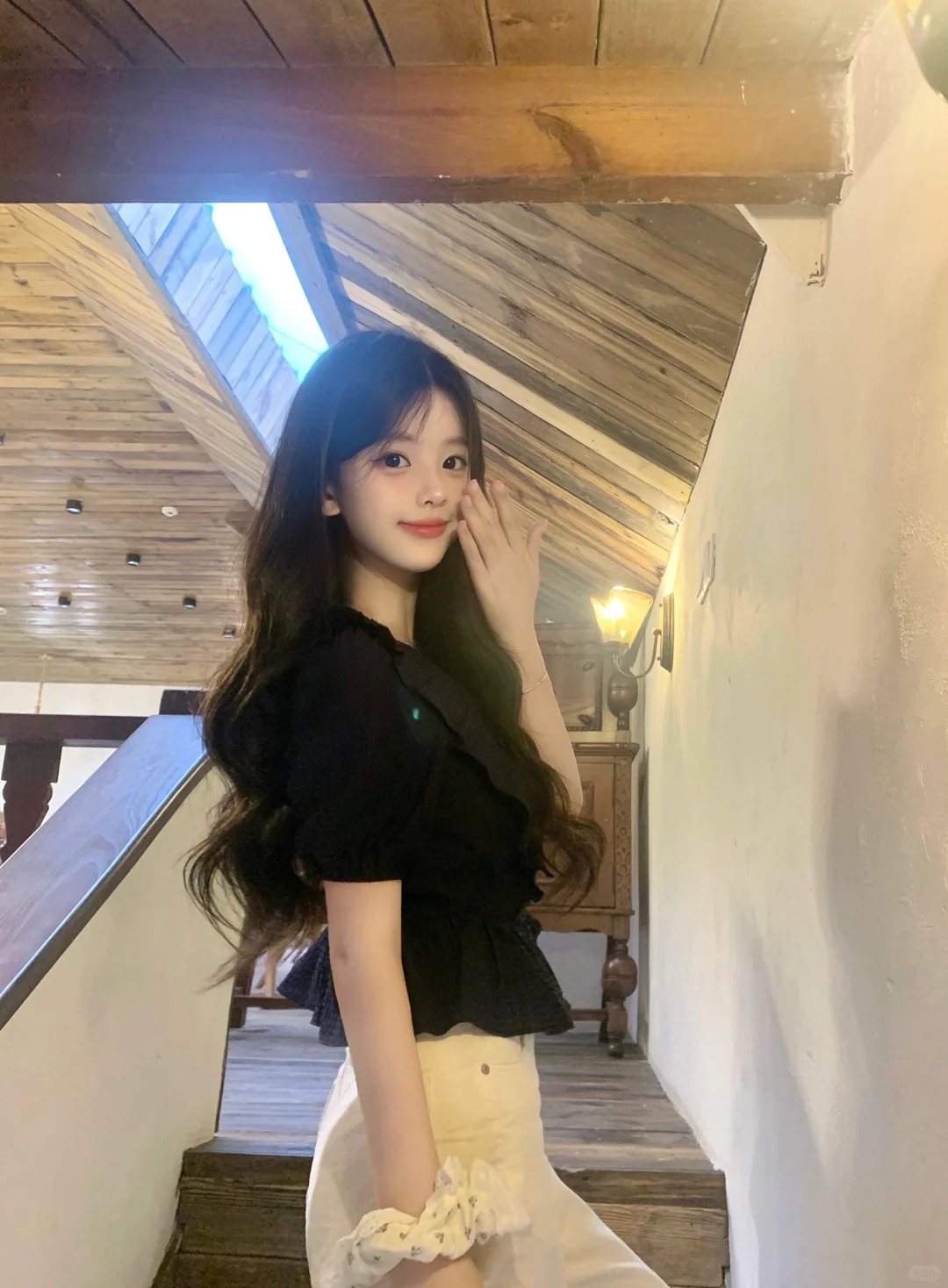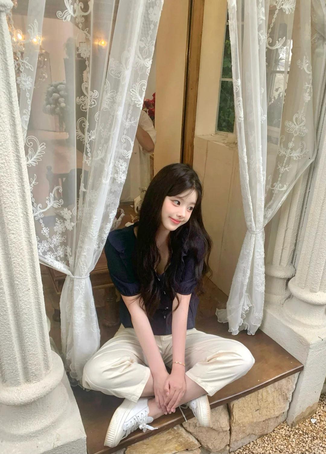 ins感韩女拍照我悟啦 穿的会素素的颜色 妆容也是着重淡妆感觉~ 整了个大波浪卷发👩🦱