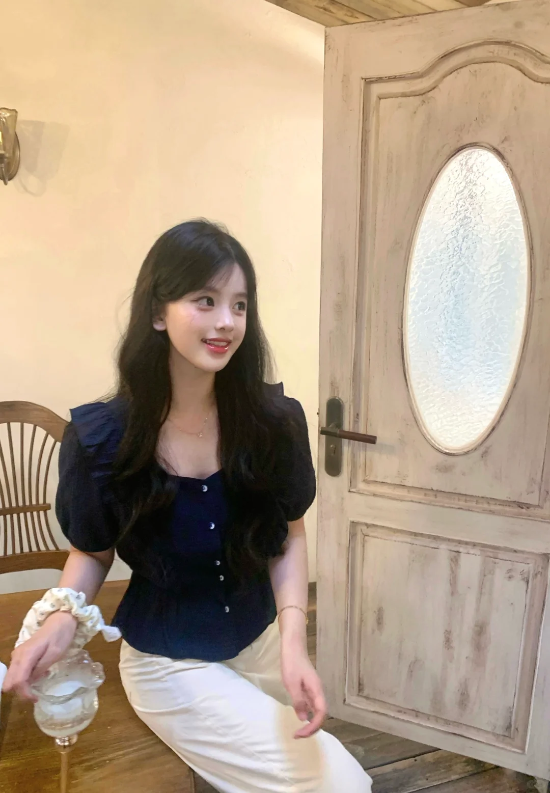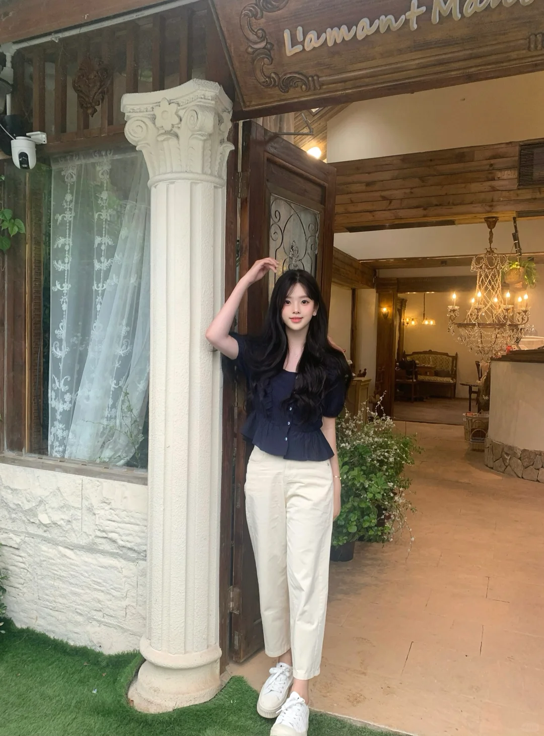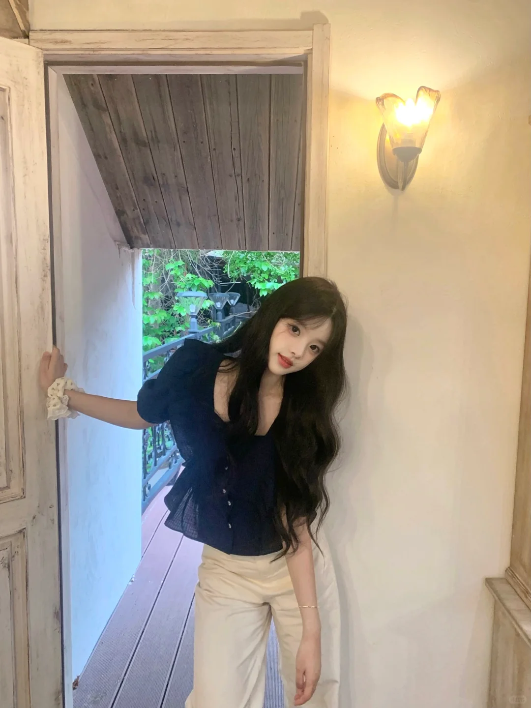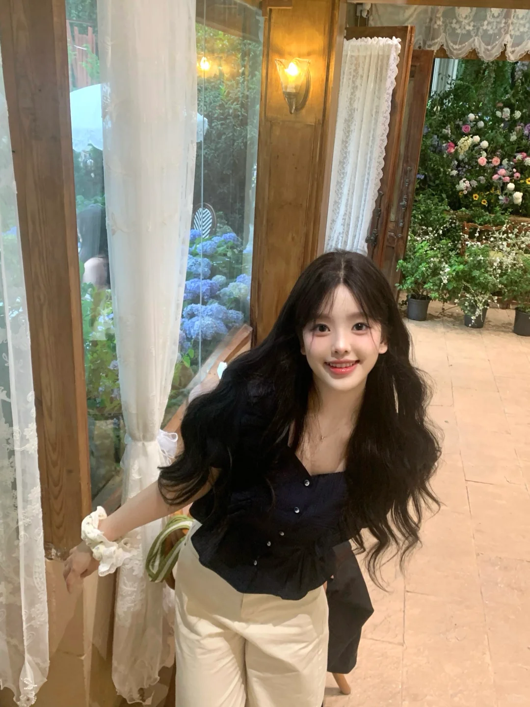 ins感韩女拍照我悟啦 穿的会素素的颜色 妆容也是着重淡妆感觉~ 整了个大波浪卷发👩🦱
