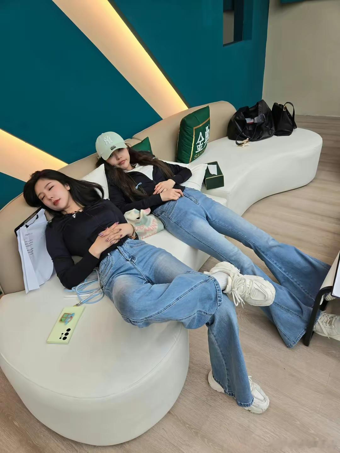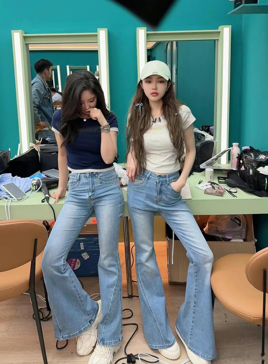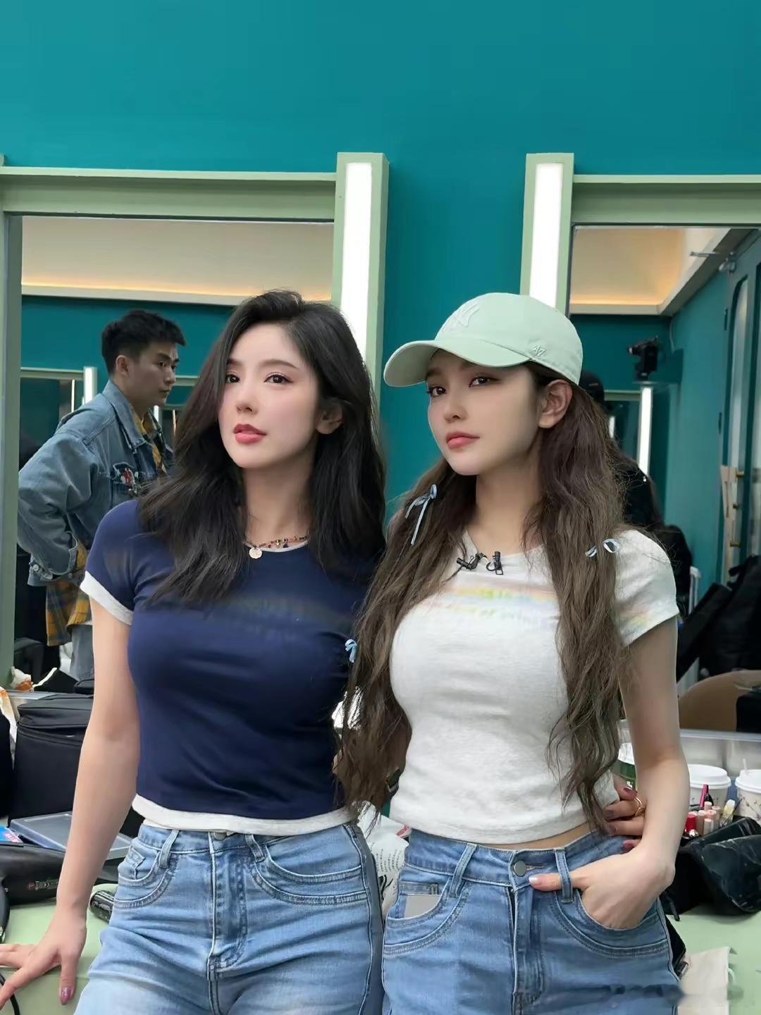 #赵奕欢周扬青同框身材#周扬青和赵奕欢合照,努力又低调的两个人,照片中两人穿基础款短袖,浅蓝色微辣牛仔裤,尽显好身材~