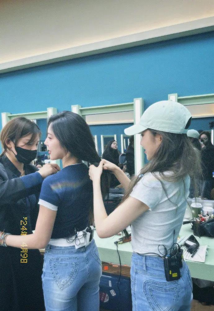 这腰臀比一看就是有练过的!!周扬青越来越有力量了,一看就是认真练了舞蹈,站姿越来越有范儿。就等着开播,看姐的后台照片。