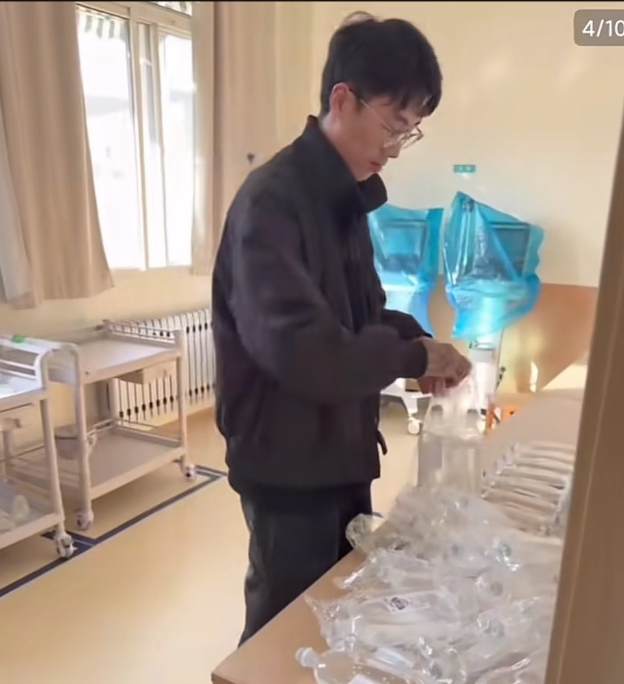 网友扒出更多猛料。原来这俩人从夏天就开始“合作”,春夏秋冬四季的视频都有男友现身。有人数出他帮忙的项目包括整理病例本、统计药物库存、甚至填护理记录单。最可怕的是,他在帮忙搬药品时还顺手直播,背景里赫然是写着病人名字的输液架。