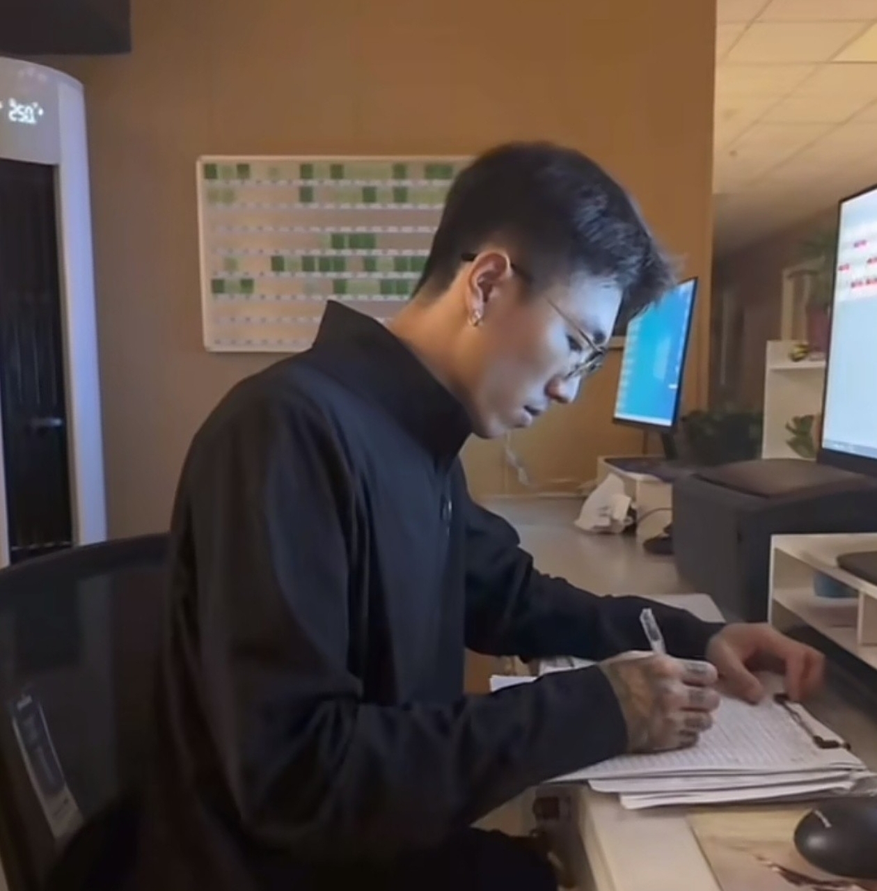 视频里,她男友纹身胳膊蹭着药瓶比划,穿着休闲外套往标签机里塞纸张,护士站抽屉里的药品清单被他随手翻看。更绝的是他穿着鞋在配药区走来走去,旁边就是挂着吊瓶的架子。有网友发现,这哥们儿连基本洗手消毒流程都没走,直接动手碰药盒。