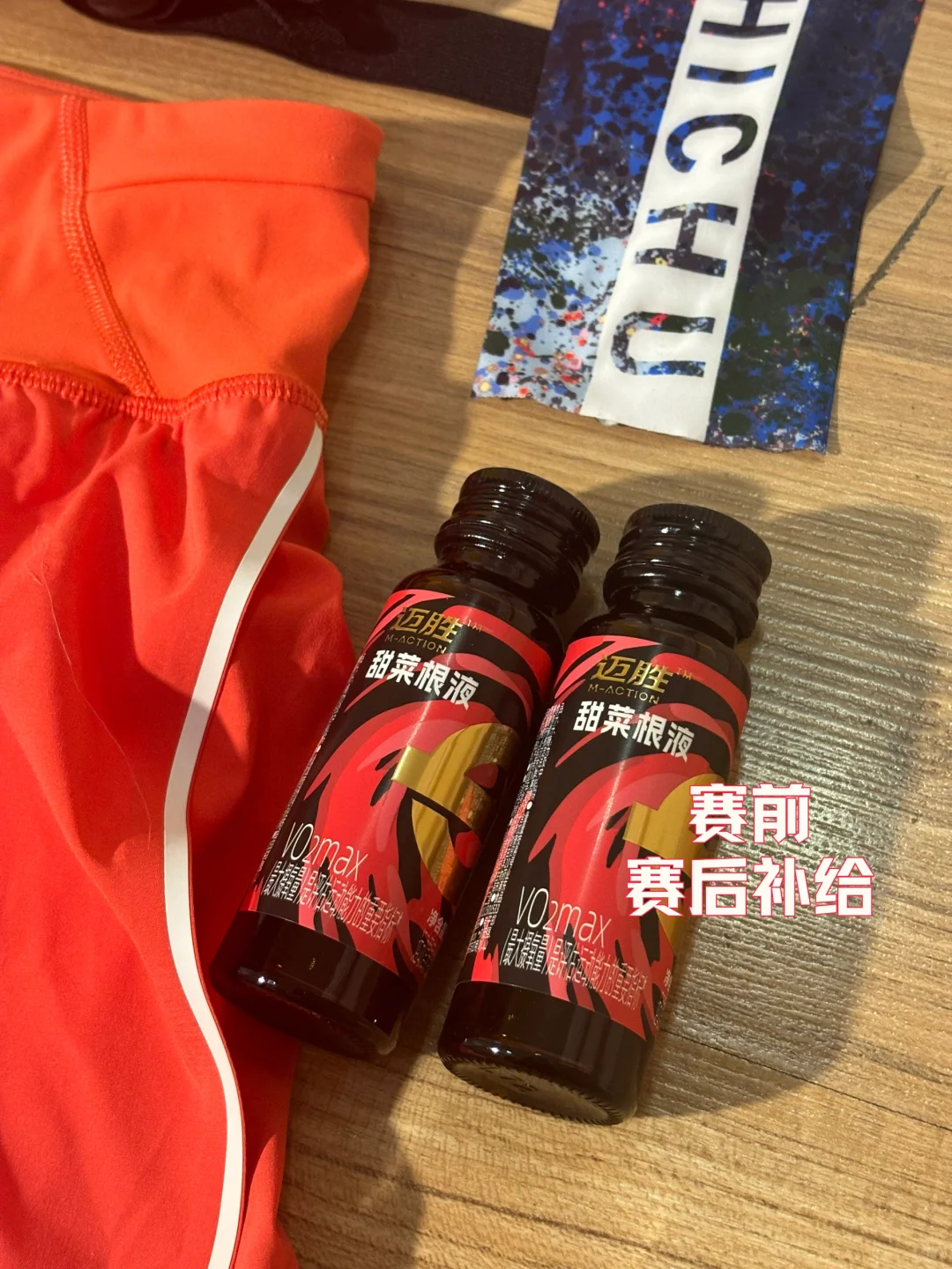 4.饮食与补给:赛前多吃馒头、面条等面食类,增加体内糖源,跑前提前吃易消化的食物不要吃太饱,赛中要准备盐丸、能量胶、盐丸我常吃的是康比特,能量胶我们国内的迈胜做的很好,咖啡味很喜欢,其中m甜菜根液我在备赛中搭配日常训练,主要能缓解长跑后程的疲劳。
