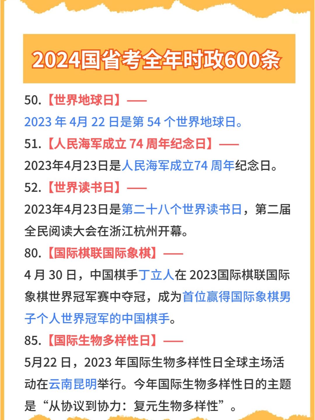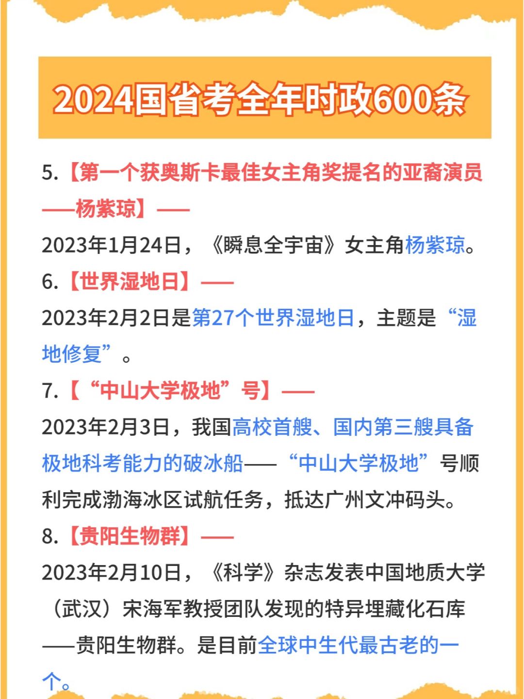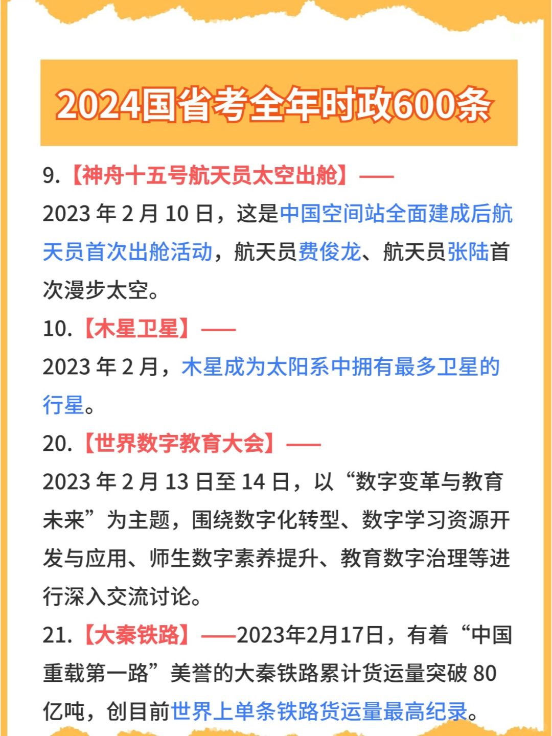 2024国省考全年时政来啦~ 这600条时政更针对国省考考试,适合正在备考即将到来的省考笔试以及国考面试的宝子们,考前冲刺码住背~