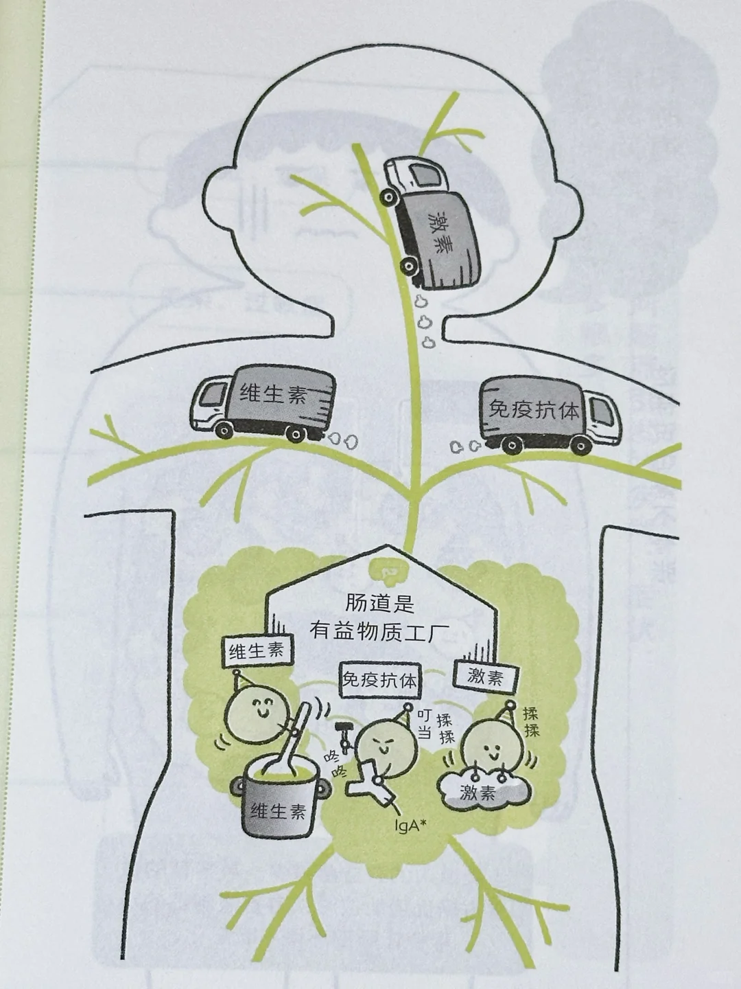 ✔️肠道会吸收、制造对身体有益的物质,并借由血液循环将它们输送到全身。