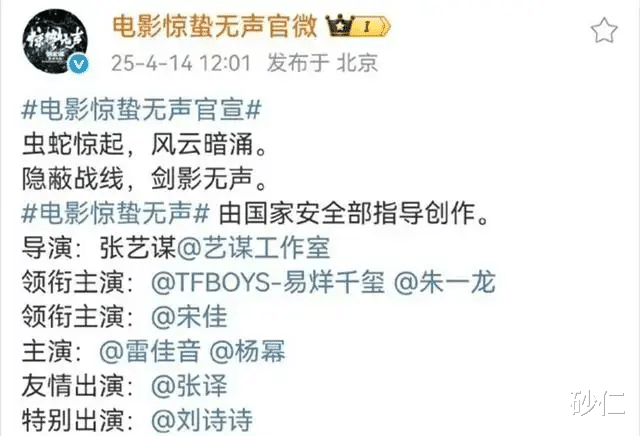 #惊蛰无声 #张艺谋 #易烊千玺 #朱一龙 #宋佳 #国家安全题材 图片来源于网络