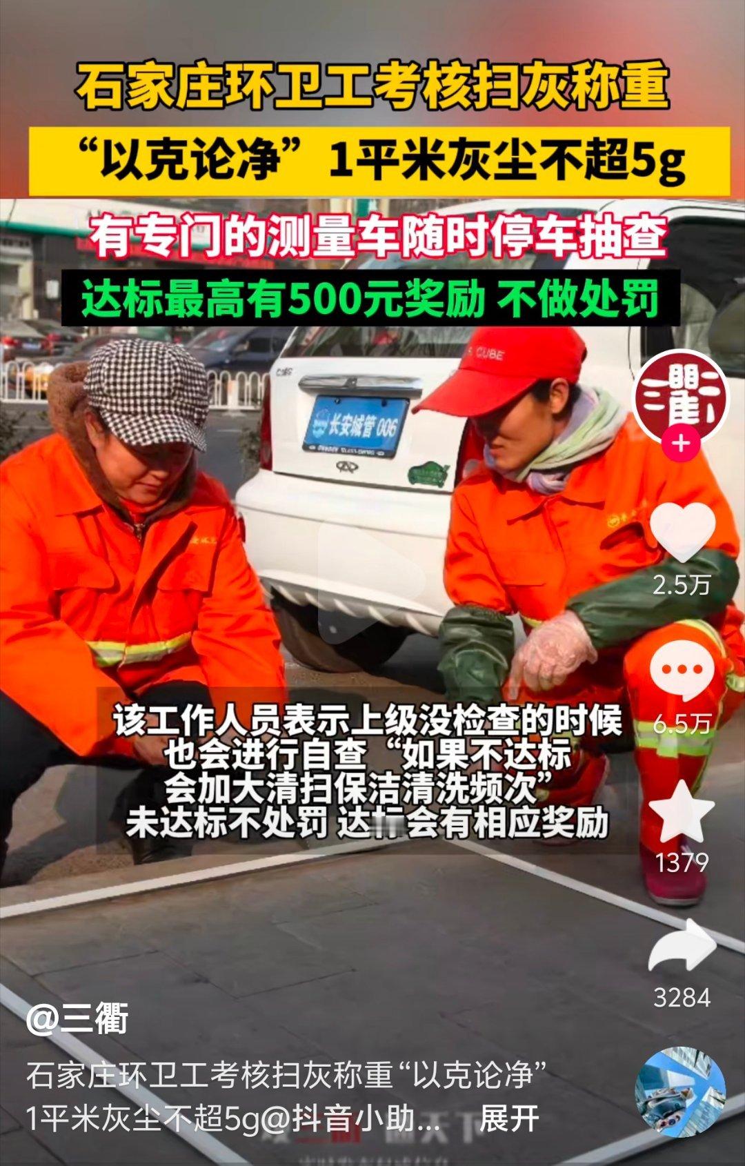 扫灰称重考核环卫工?现在有些部门真的太闲了,真心希望这些不能能够精简人数,把那些在岗没事的做的人给刷下来做他该做的事情,要不然这妥妥的是浪费国家资源