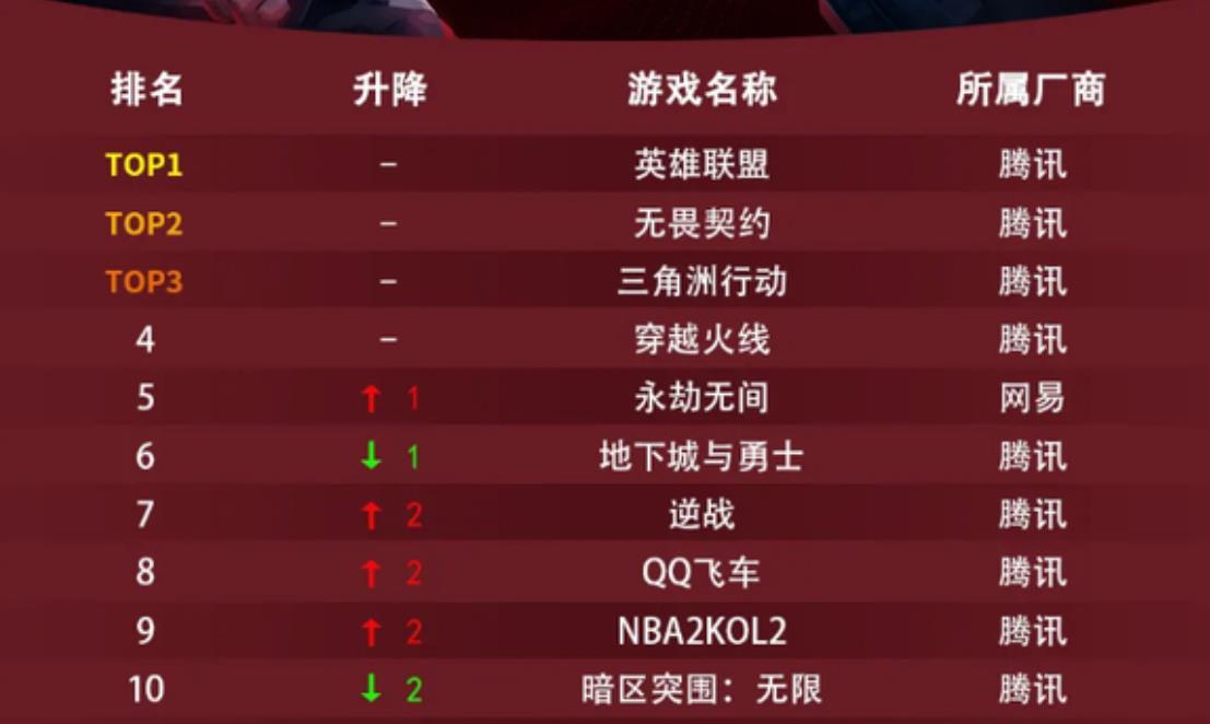 基本上DNF自从自断PVP双臂之后,就再也不可能回到巅峰了,看看前五,都是PVP为主的游戏。