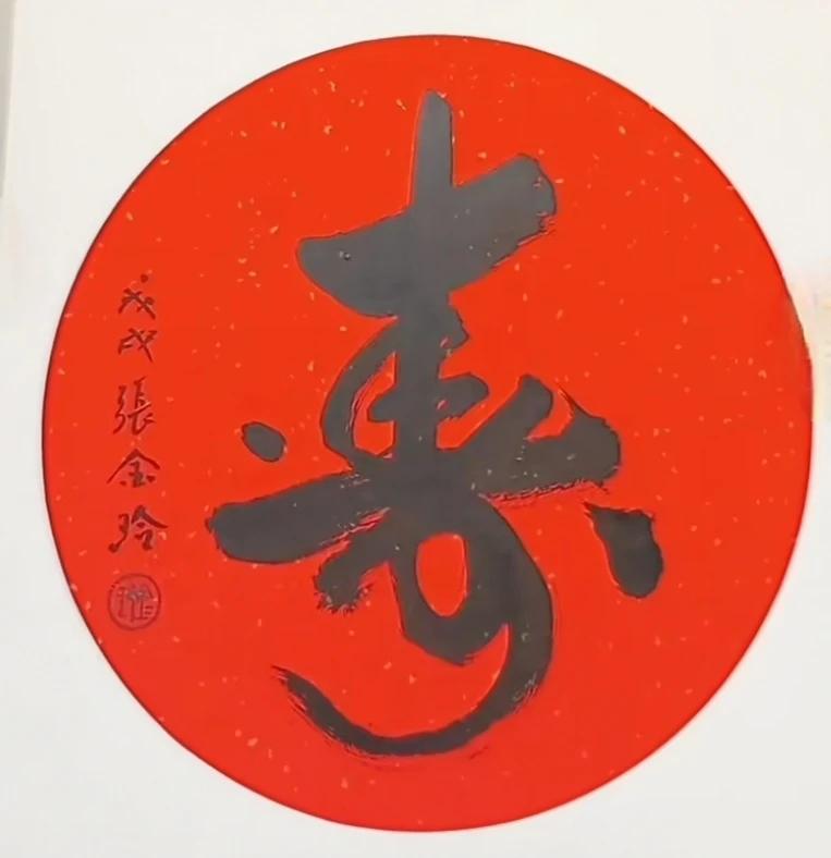 侯宝林为张金玲写了一幅寿字书法,如今张金玲也成了书法家了 图二 张金玲写的“寿”