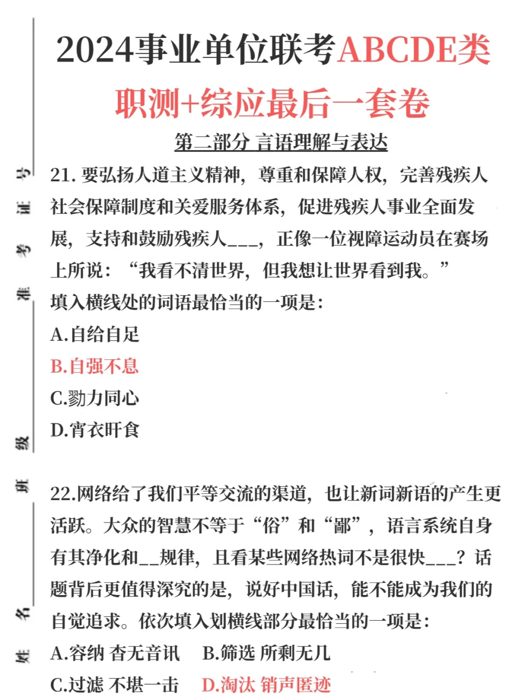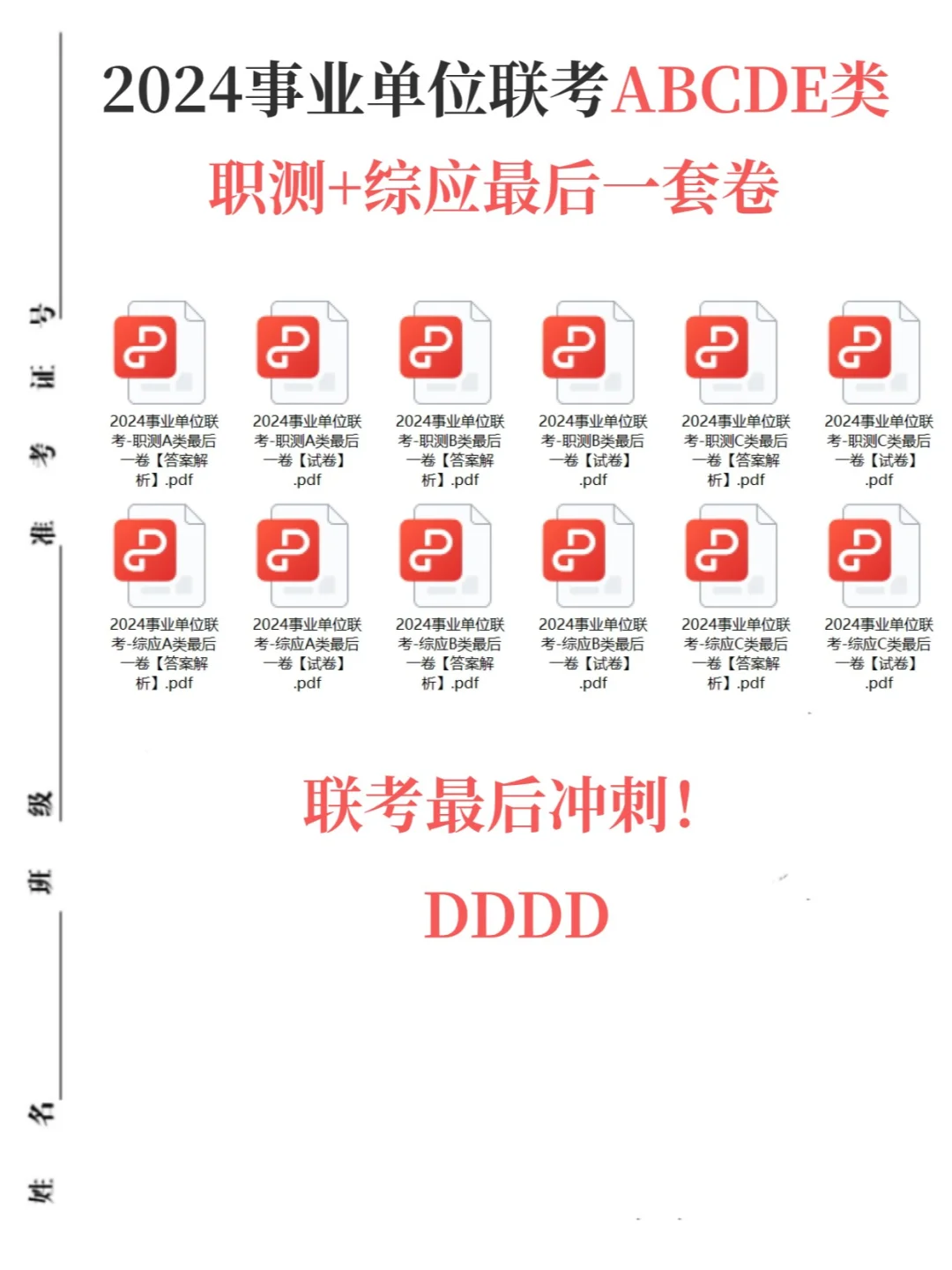 🔥330联考倒计时7天啦 🙏考试时间:3月30日 🙏笔试科目:职测+综应 还没准备好的同学不要焦虑,ABCDE类考前最后一套预测卷已出,含试卷+解析,考前做完并做好错题总结,就能多拿几十分! 就拼这最后一把了,冲冲冲!