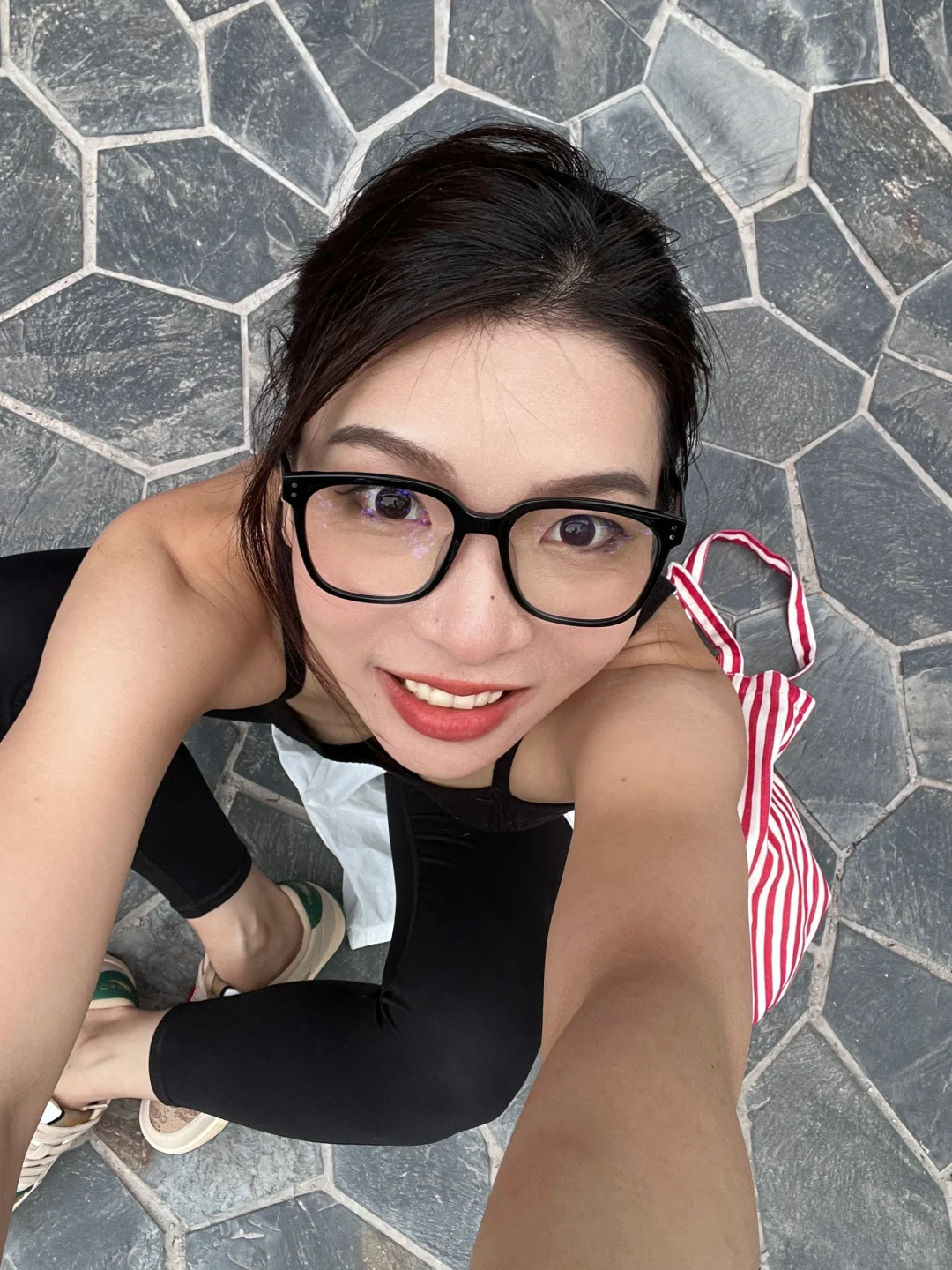 晒黑能看出我化妆了[大笑R] 路上遇到一个爱穿搭瑜伽裤背帆布包 那个人一定是我!