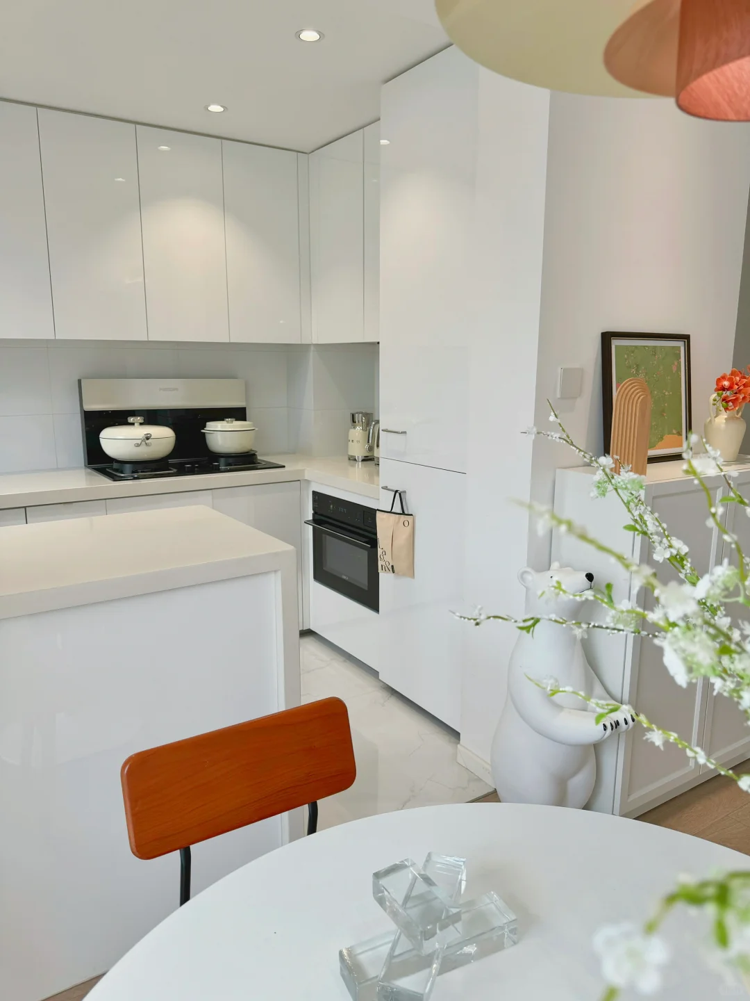 ⚠️还有就是,大家如想做嵌入家电的,切记一定要提前预留好尺寸,插座都留在侧边柜子里,不要🙅留正后方,冰箱留上,切记哦!