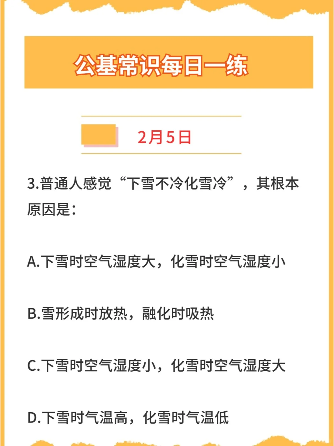 1.“及“字有多少笔画? A.3 B.4 C.5 D.6 2.天下第一关”指的是? A.山海关 B.雁门关 C.娘子关 D.嘉峪关 3.普通人感觉“下雪不冷化雪冷”,其根本原因是: A.雪形成时放热,融化时吸热 B.下雪时空气湿度大,化雪时空气湿度小 B.下雪时空气湿度小,化雪时空气湿度大 D.下雪时气温高,化雪时气温低