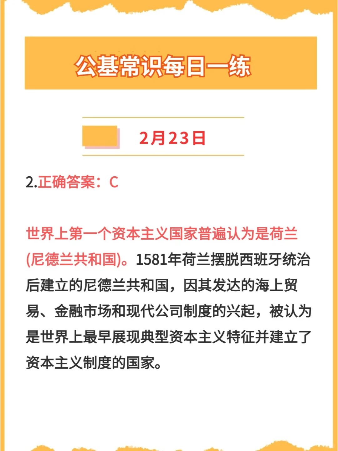 【公基常识】2024年2月23日每日一练打卡