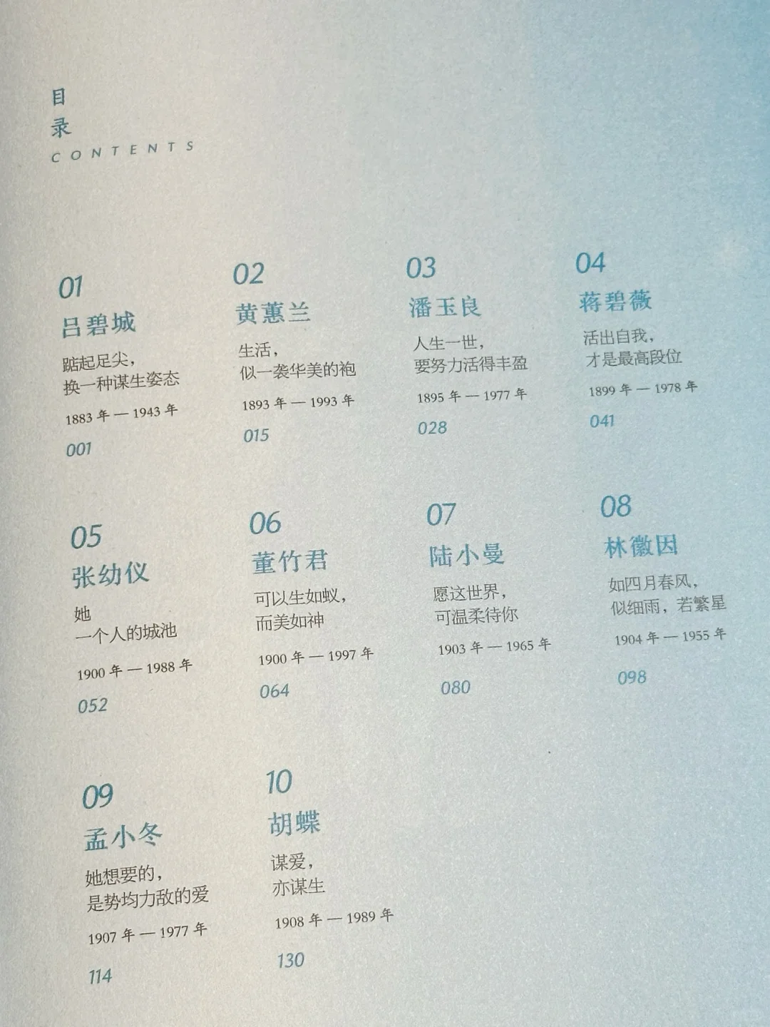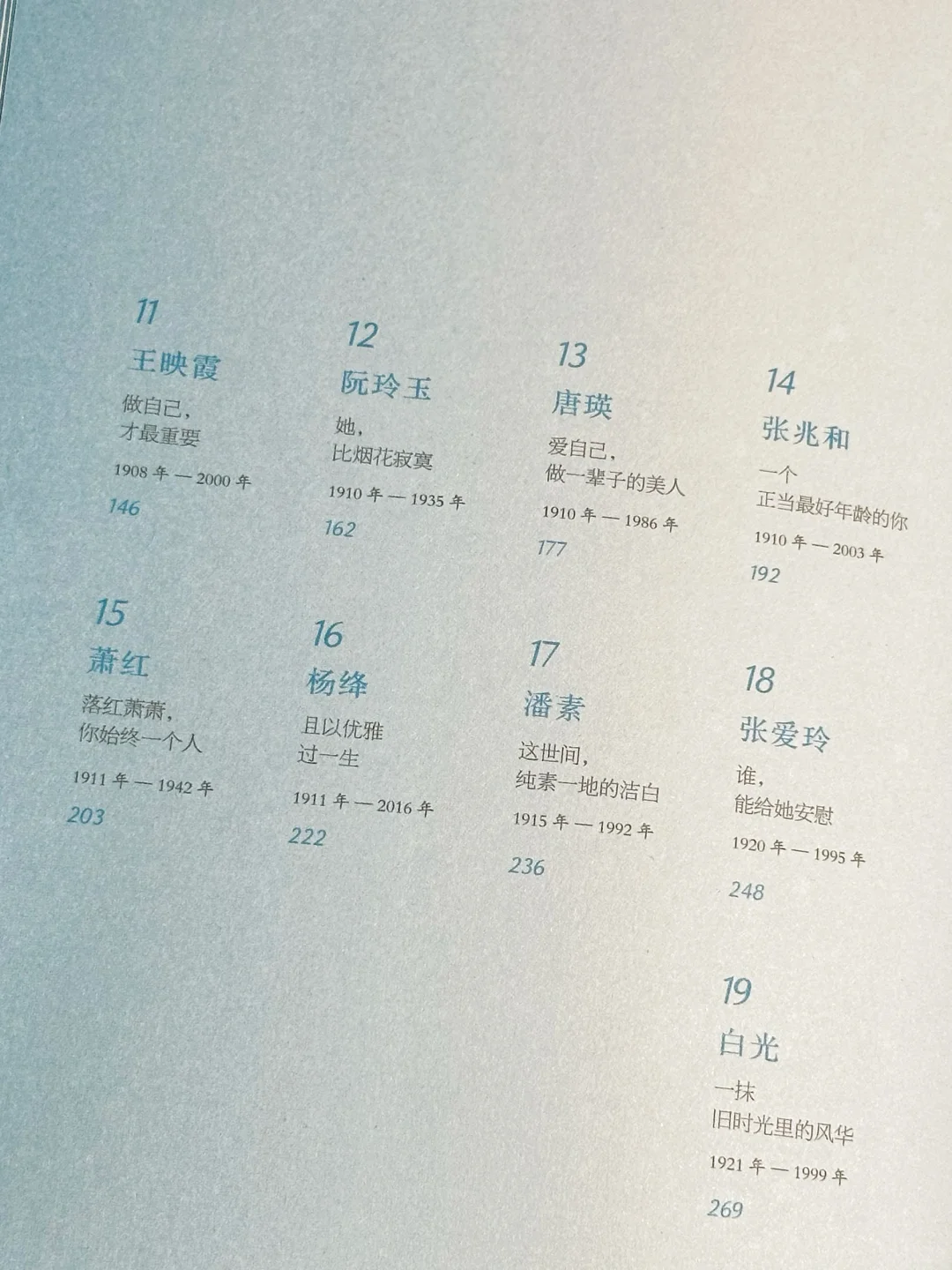 很庆幸读到这样一本好书,让我能如同亲临般走近这19位奇女子的人生,去感悟她们生命中的酸甜苦辣和从苦难中涅槃的艰难历程。正如书中所写:“真正好的人生,是在荒芜的岁月中不断重建生活,却又从未委屈了爱情。”