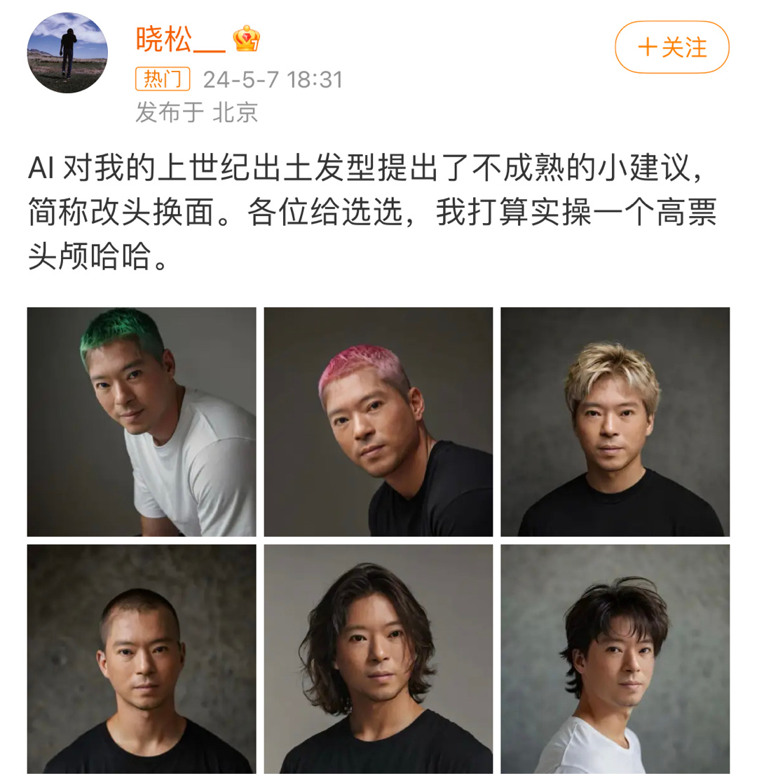 哈哈哈哈哈哈高晓松用AI搞了六种发型让大家投票[允悲]感觉还是5的发型在加个眼镜才像高晓松,大家觉得呢[笑cry]
