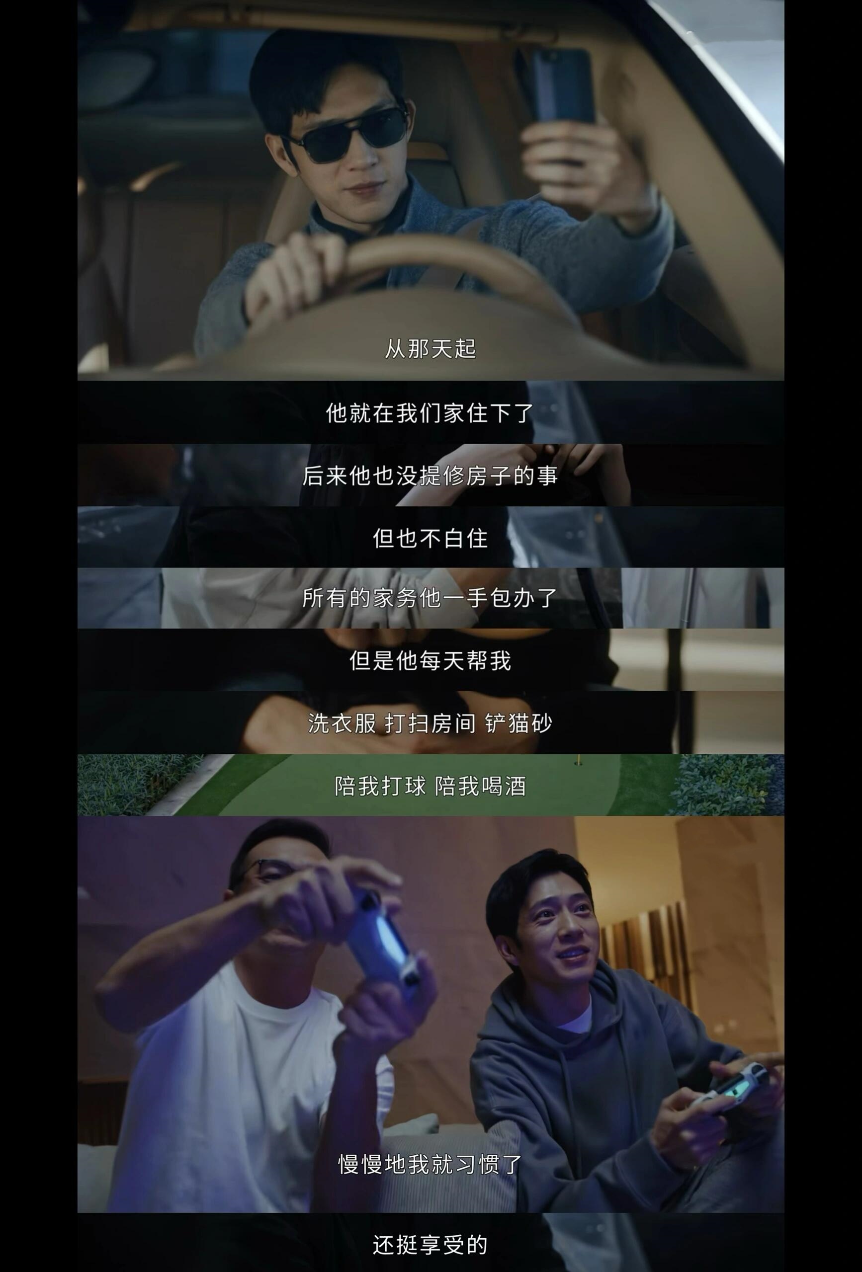 他每天给他洗衣服,打扫,铲猫砂,陪他喝酒,打游戏,给他熨衣服带早餐/他把他的衣服,车,手表,眼镜,通通借给他,算得上双向奔赴吧
