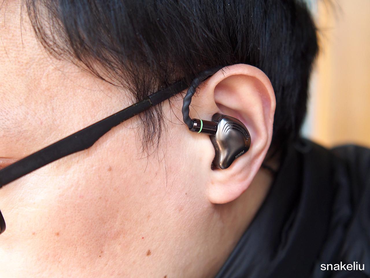 耳机配合线材,采用了后挂式的设计。这样佩戴看起来很像音乐会上歌手用的监听耳机,耳机是入耳式的设计,佩戴还是比较舒适。戴习惯了开放式耳机,这样的耳机戴时间长了还是有点不适感,算是物理控制我戴的时间吧。
