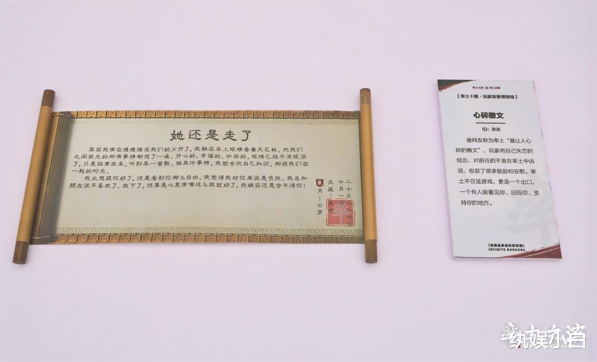 而在最近,这些藏在游戏褶皱里的温度,曾被视为小圈子里的私藏浪漫,终于被“率土玩家故事博物馆”所收录。此时,那些曾被轻描淡写的过往,才真正有了被众人熟知的机会。