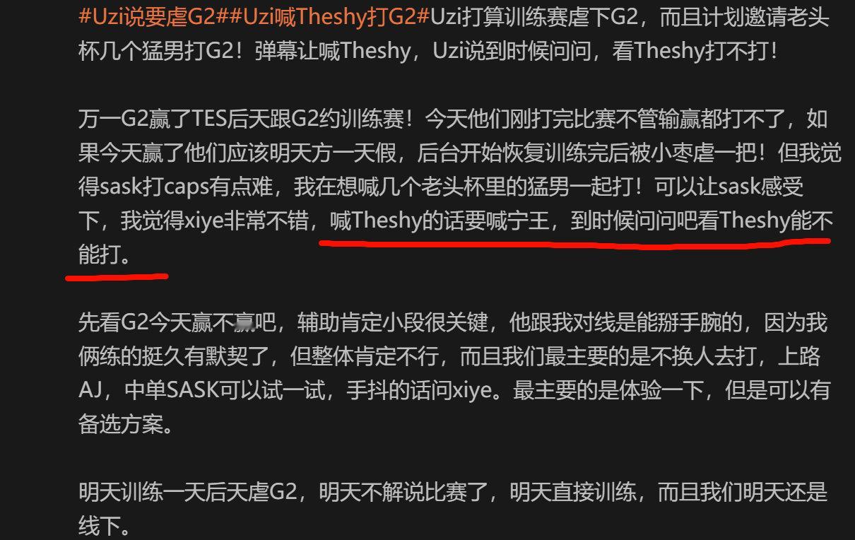 #G2战胜TES##Uzi说要虐G2##Uzi喊Theshy打G2#