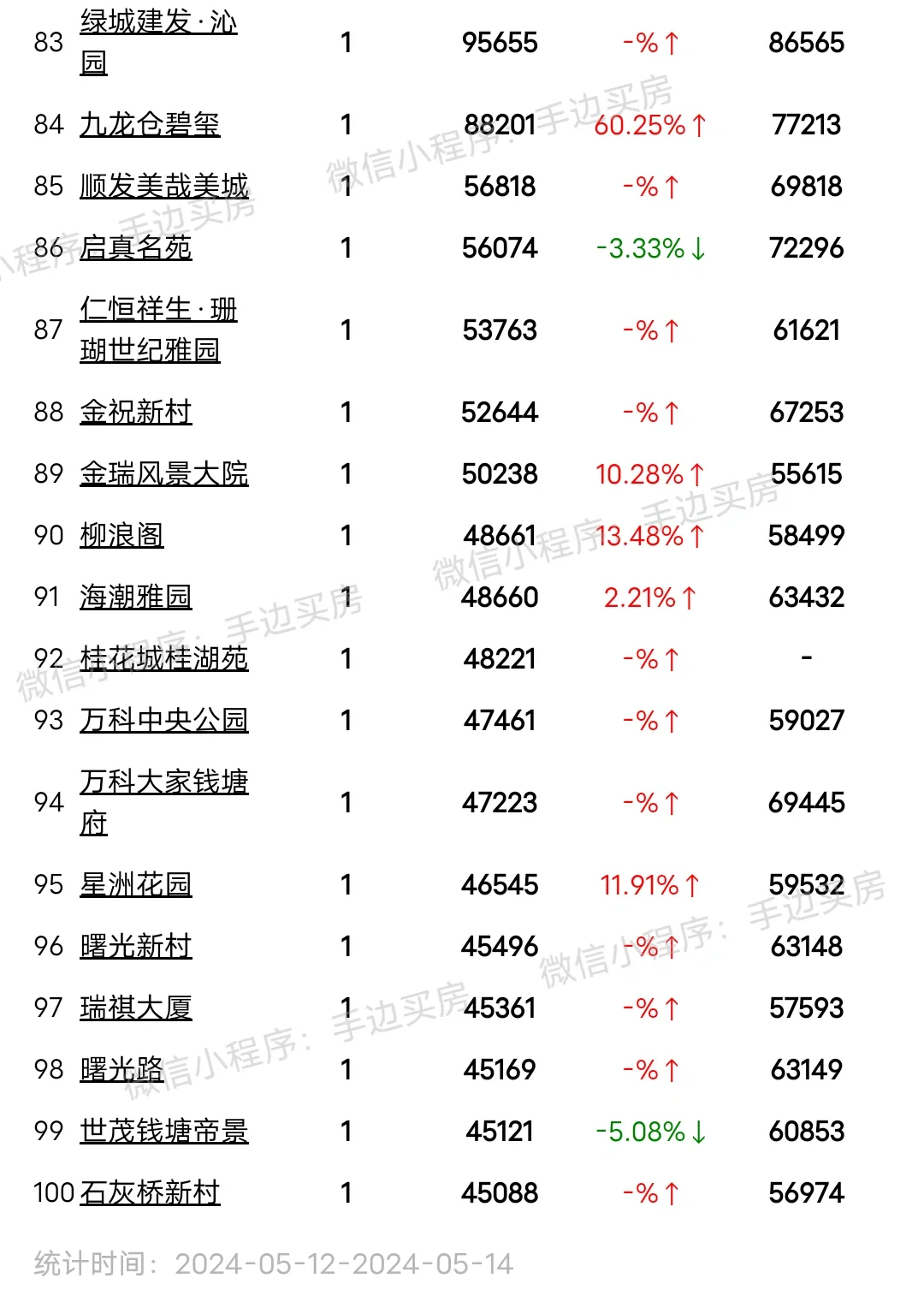 24年5月12号~14号杭州二手房成交量排行榜! 看看你家小区上榜了吗? 市场动...