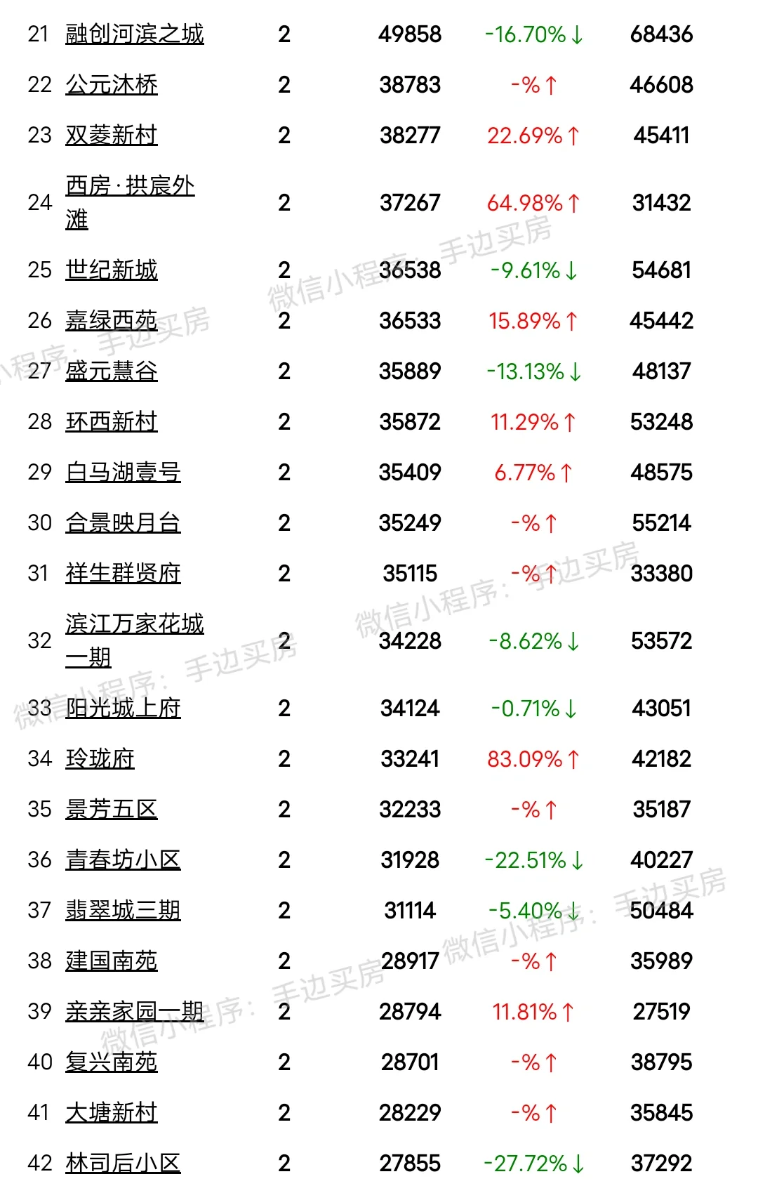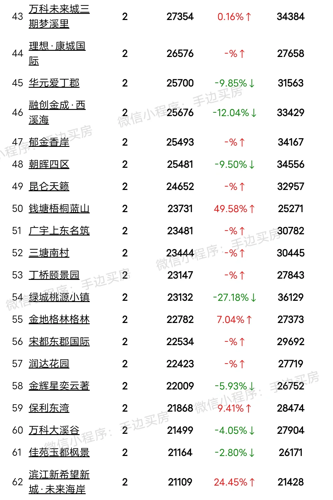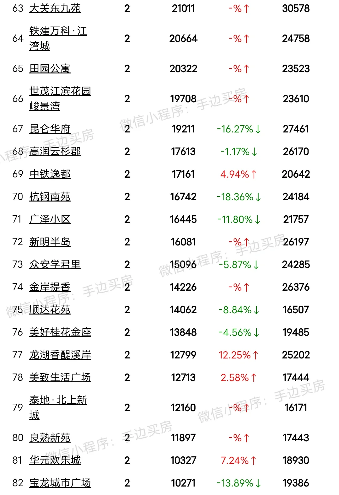 24年5月12号~14号杭州二手房成交量排行榜! 看看你家小区上榜了吗? 市场动向,数据先行!用数据说话靠谱! 后附:绿地旭辉城网签数据! 注:可咨询买房,卖房,政策等问题; 可无偿提供楼盘历史成交数据; 有降低购房成本方法。注非中介 其他数据私信!
