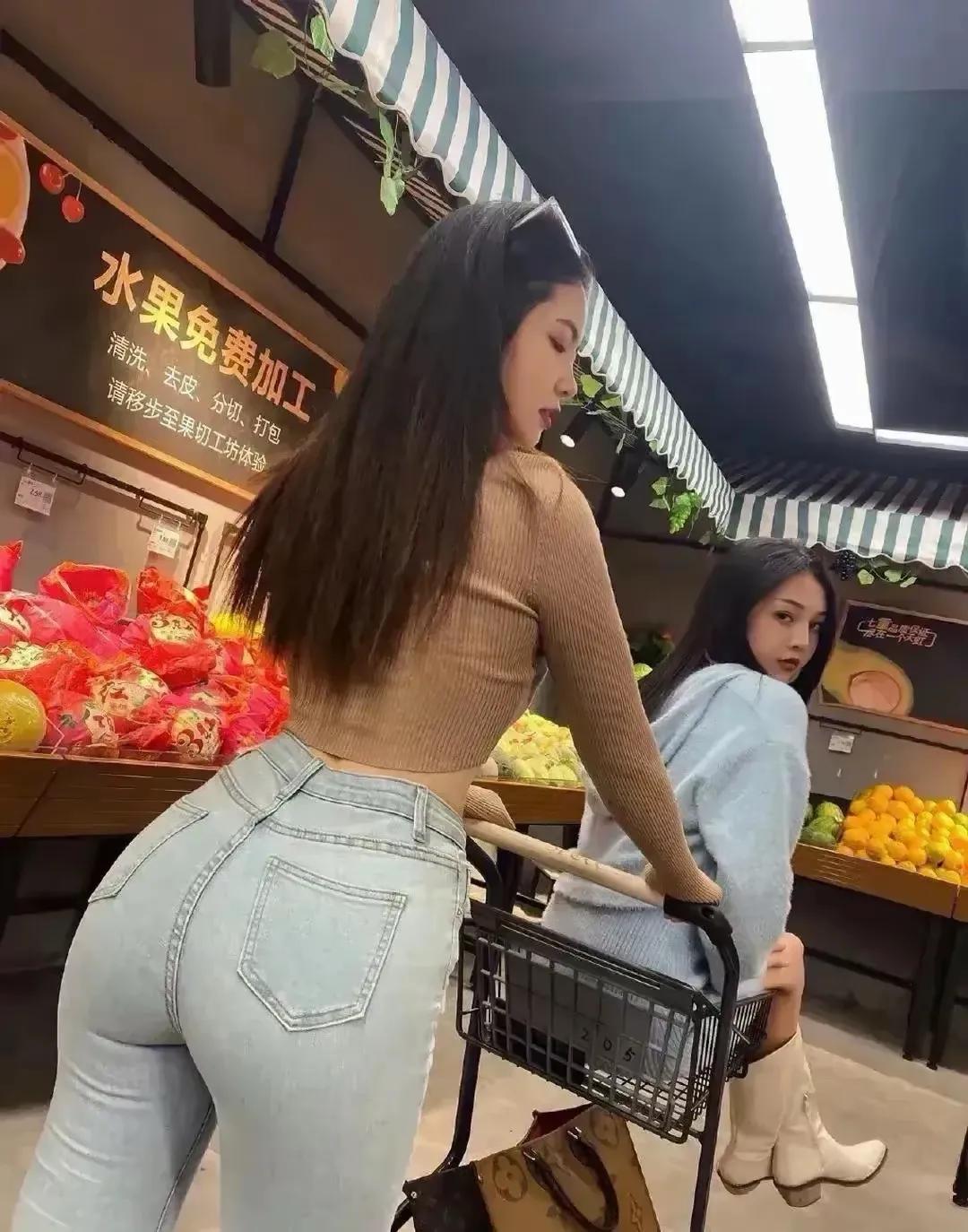 气质美女,浅色紧身牛仔裤,白色衬衫,一道亮丽风景