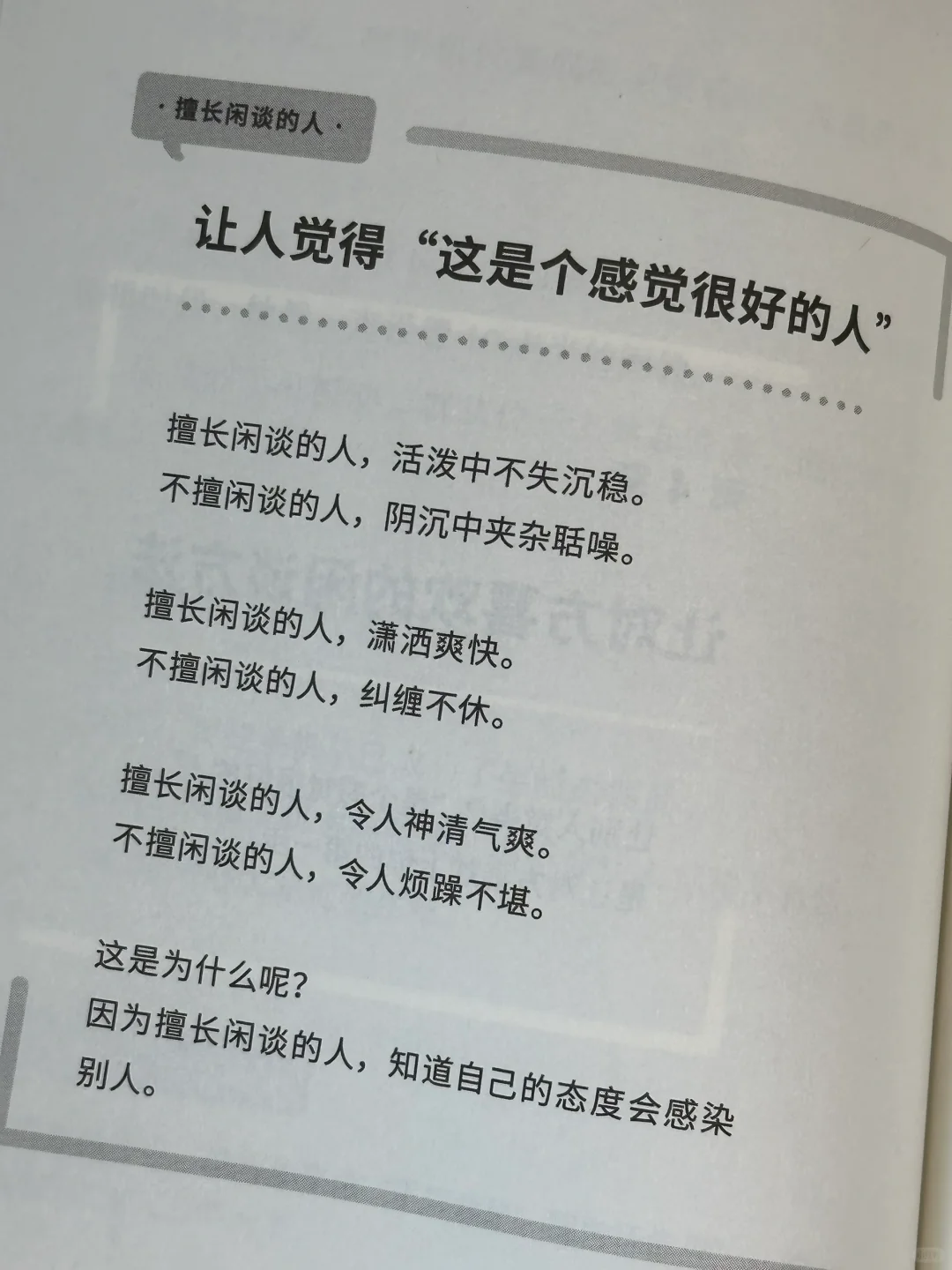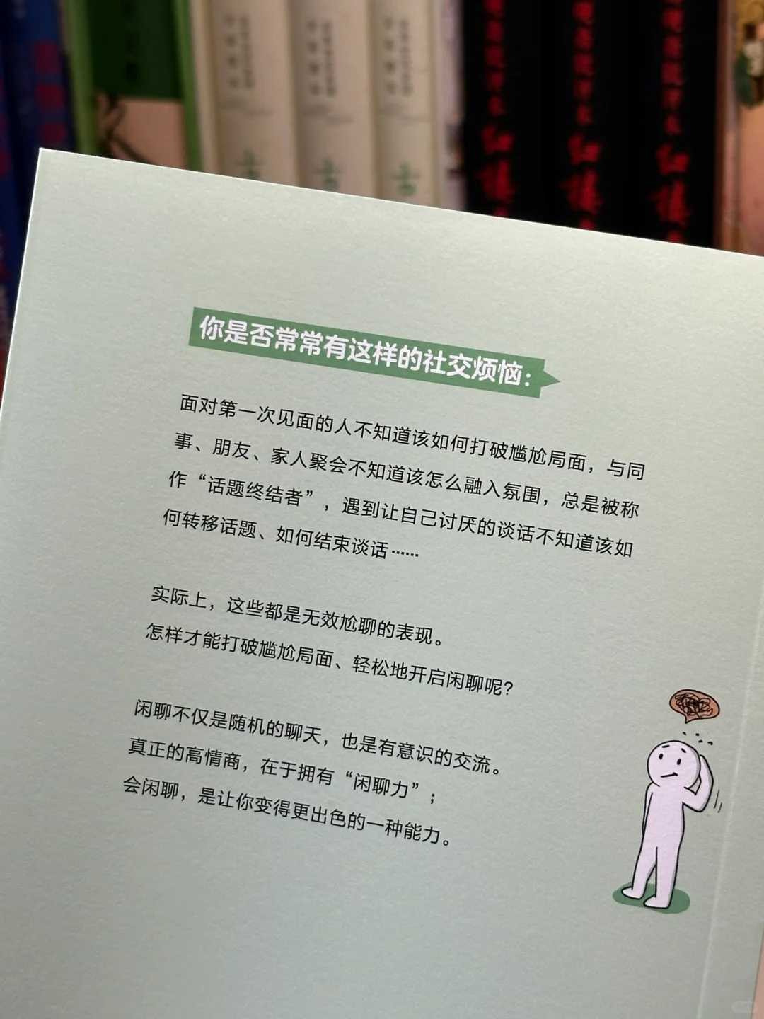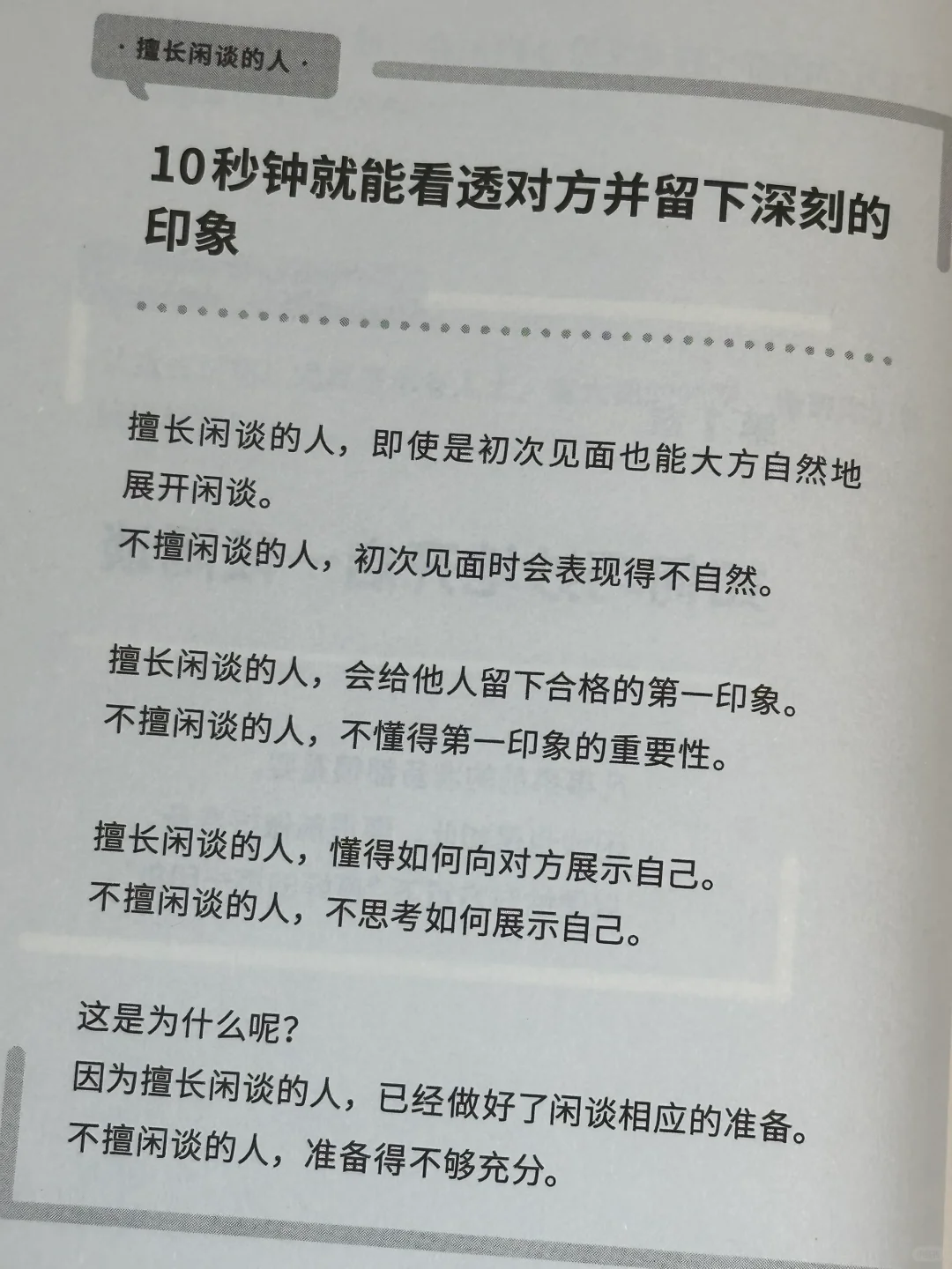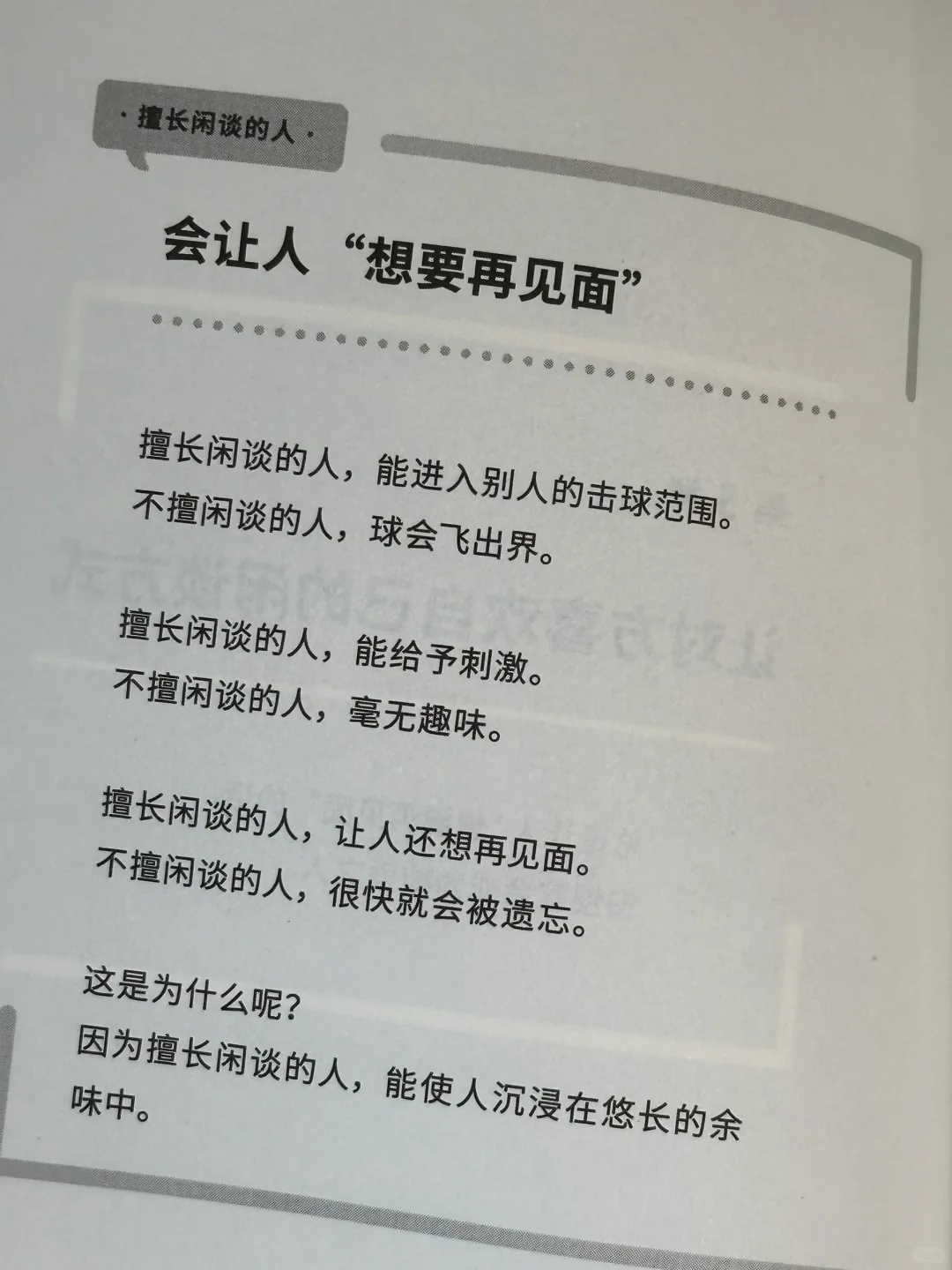 这本小书读起来简单明快,内容丰富实用,是一本不可多得的提升社交能力的实操指南。推荐给大家,我们一起锻造优秀的“闲聊力”,让生活变得更加精彩!