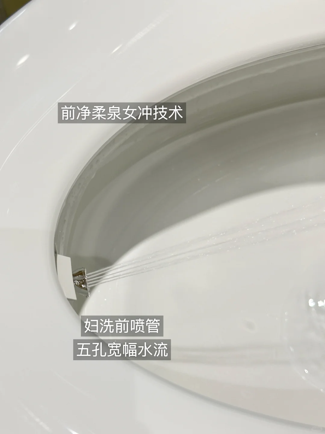 因为它还有个特别的功能就是前净柔泉技术,专门为咱们女孩子设计了一个妇洗的前喷管,水流方向是从前到后的。我看其他马桶的妇洗,都是从后往前冲的,也就是水会先经过PP才能冲到前面,就很不懂女孩子的生理结构,一点也不卫生。