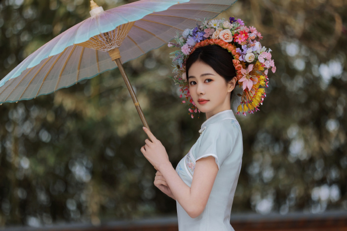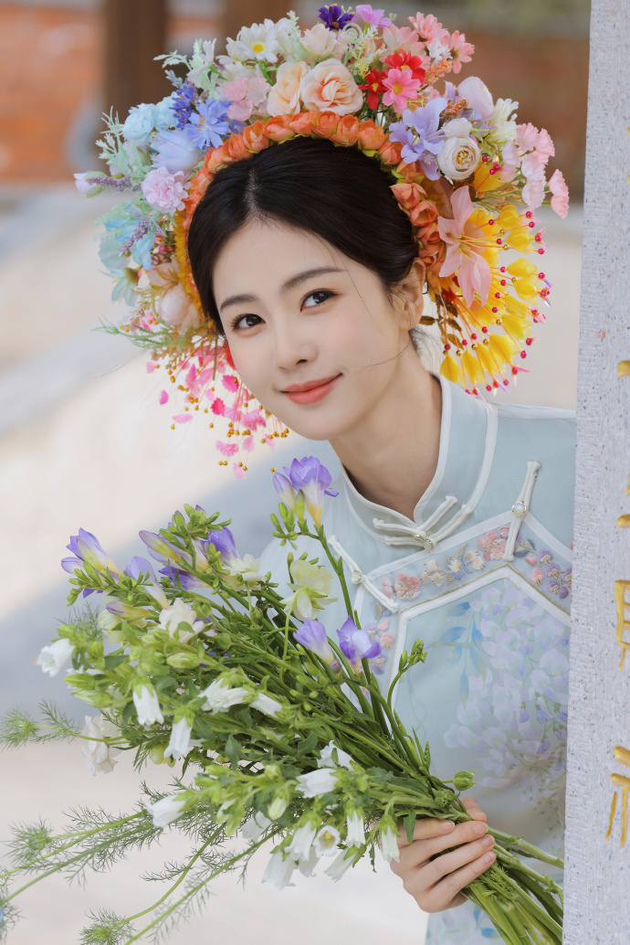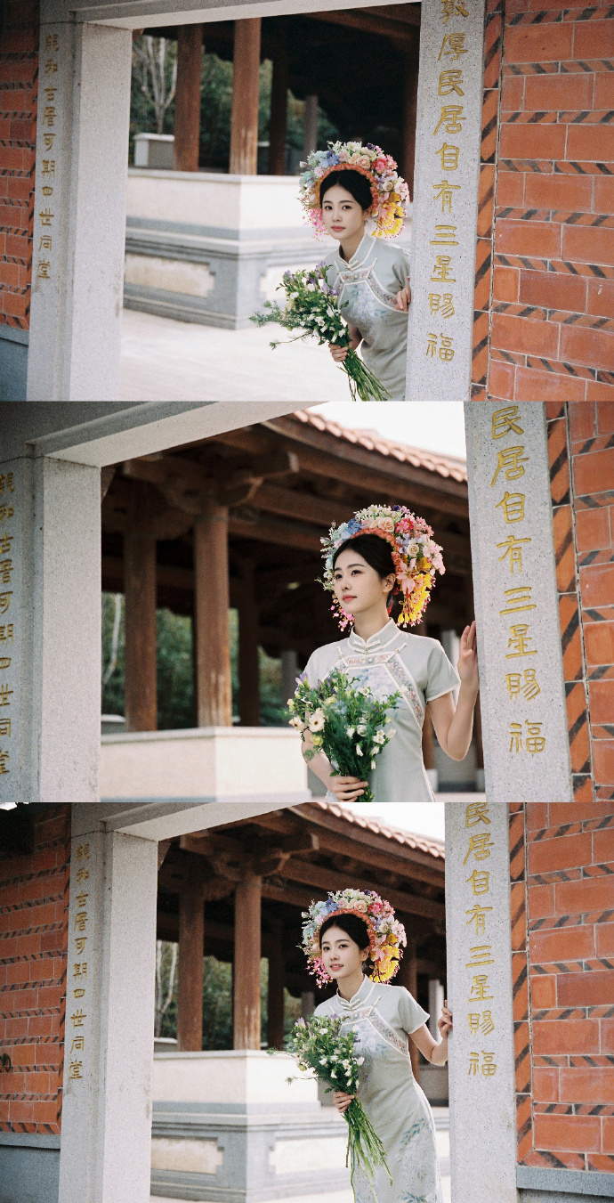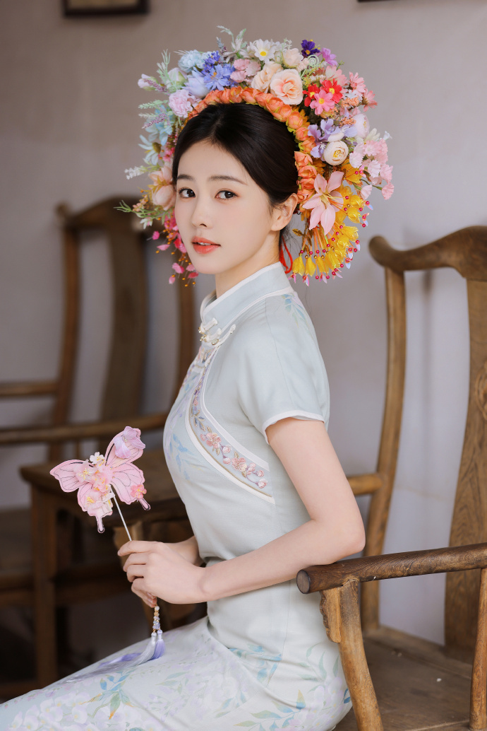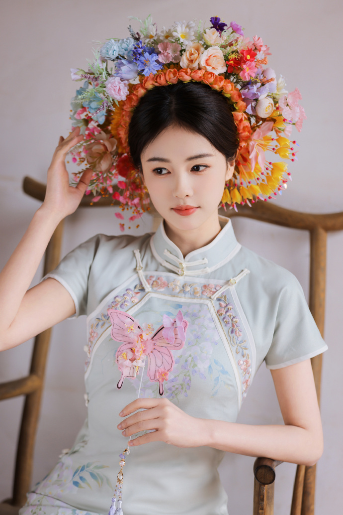 :白鹿簪花写真白鹿新中式旗袍古韵又清新~温婉端庄的东方美人我们小菠好明媚的美[给