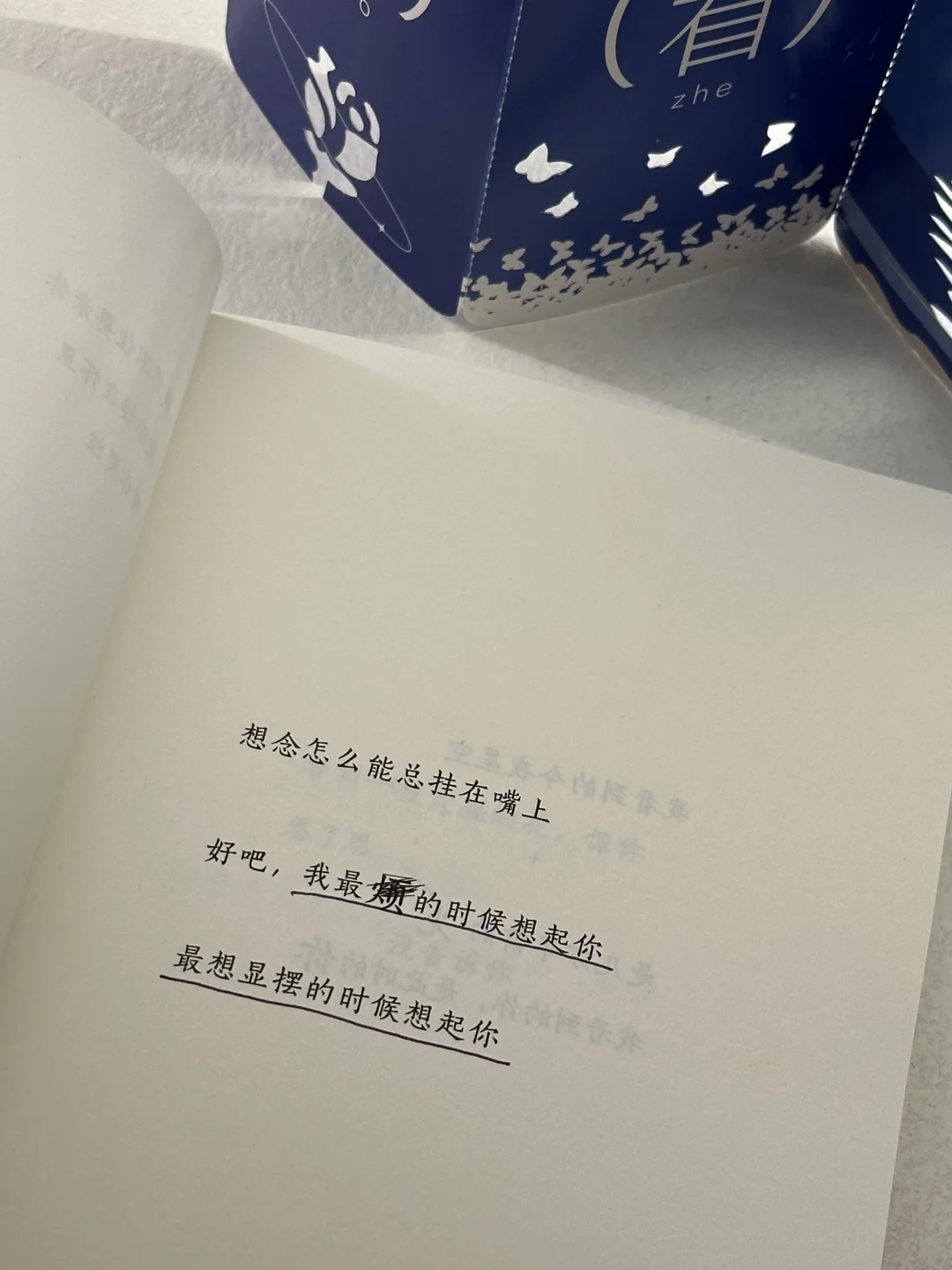 “在树梢起风,在水面下雪,在你不知道的时候想你。”