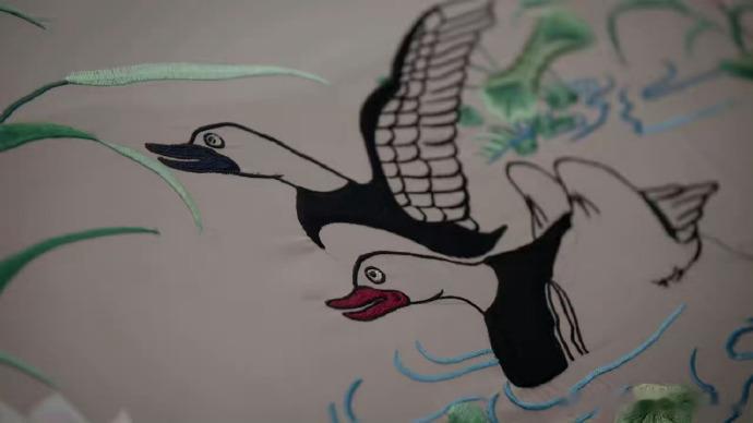 #林婉儿绣的鸳鸯# 林婉儿手中的针线,似乎有着自己的想法。鸳鸯还是大鹅?或许并不重要,最重要的是咱们鸡腿姑娘体验创作的过程