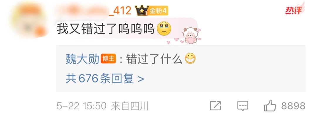 谁懂魏大勋这句“错过了什么”的含金量啊!!!!!爱人不会错过,爱上魏大勋永远不会让你错过[抱一抱]