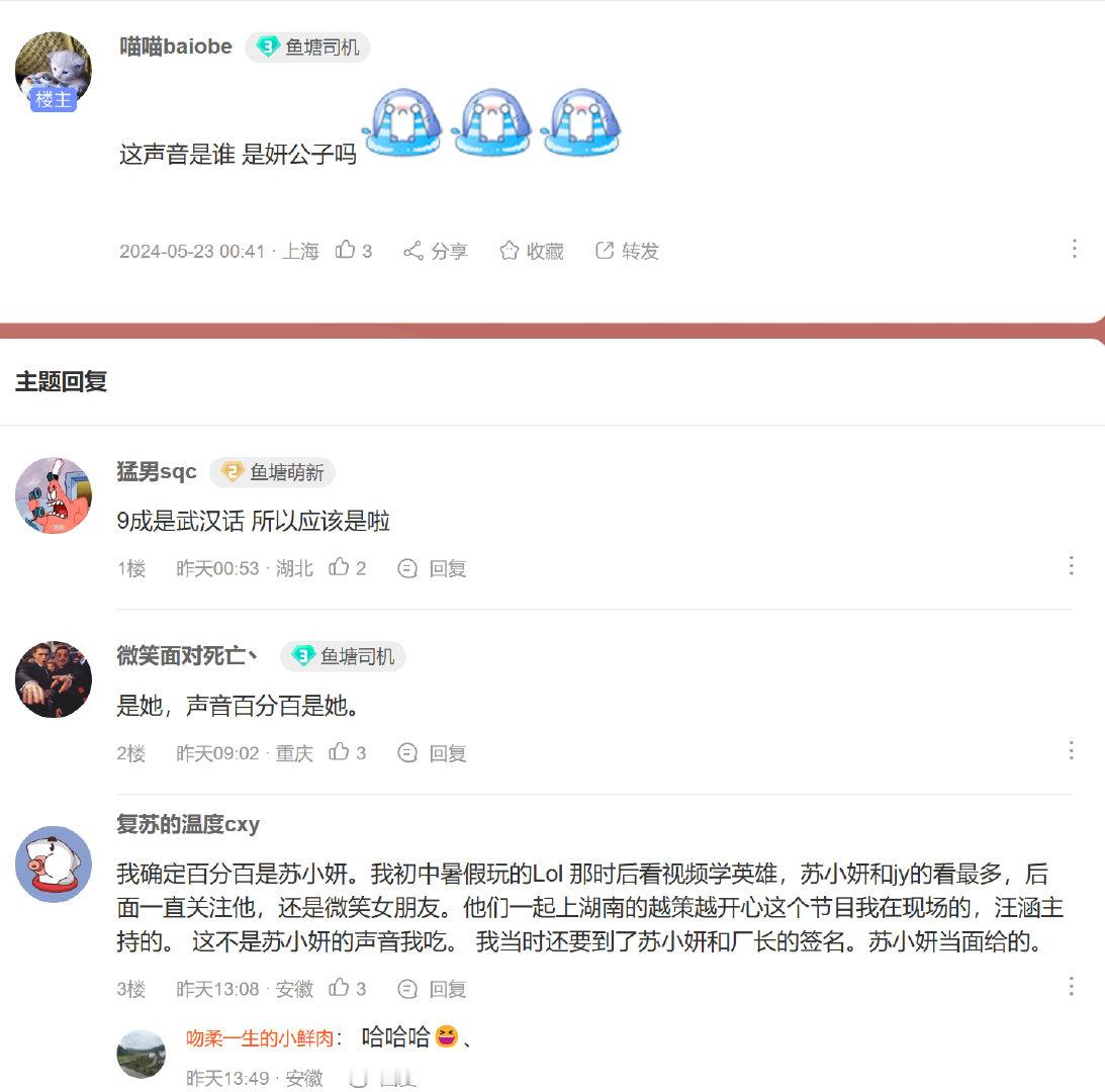 去听了下微笑直播间传出的声音,完后又看了看粉丝的讨论,感觉八九不离十啊~跟苏小妍
