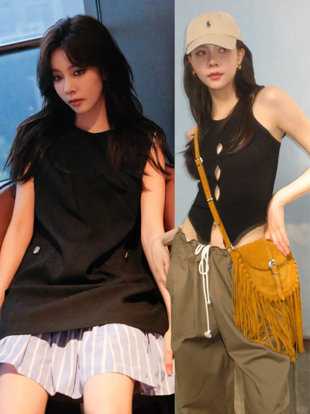 每次看到宋妍霏的穿搭分享 都忍不住感叹的她搭配功力太🐮啦 近期分享的夏日look 把色彩玩出花样 亮色+暗色的碰撞 穿出新鲜感~ 小黑裙搭配芭蕾风平底鞋 优雅娇俏 裙摆拼接蓝色条纹 打破allblack的沉闷 整体变得轻盈起来~🫧 蓝色蕾丝吊带和亮黄色高跟鞋的撞色 瞬间变成复古辣妹 拿捏反差感 复古球衣搭配蓝色包包💙 瞬间化身NewVintage女孩 活力满满 cici的穿搭已经是next level了 敢搭敢穿的时髦精 总能给人惊喜✨ 5.28的直播值得期待! ▪️图cr-宋妍霏