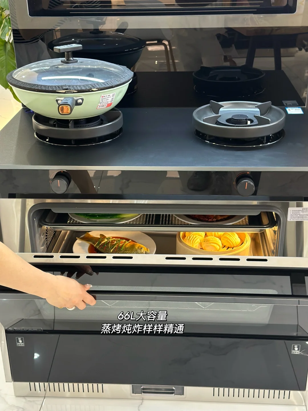 新家入住快三年了,我家是套内只有80平米的小户型,装修的时候为了省钱也没有请设计师,入住后发现整体还挺满意的,唯一遗憾的是5平米小厨房没有装集成灶。 平时在家我喜欢研究美食,入住后买了蒸烤箱、微波炉和空气炸锅等小家电,奈何厨房台面实在是太小了,每次做饭都手忙脚忙感觉施展不开。 最近妈妈的新房在装修,她让我帮她去店里选下集成灶,正好杭州有实体店,我和老公去体验了下亿田集成灶,一进门就被D6ZK蒸烤一体集成灶吸引住了,真的相见恨晚啊。 首先它的颜值真的高,黑晶磨砂台面质感满满,平时做饭一擦就干净了,内胆是无缝纳米陶瓷内胆,很好清洁适合我这种懒人。 而且是一机多用,蒸烤炸炖样样精通,家里来客人或者我平时独自带娃,做饭有时候来不急,它可以同时蒸好几道菜,真正做到省时省力,而且不占地方,太适合我们小户型厨房了。 它还是智能化的,平时不仅可以语音控制,还能手机操作,再也不用担心做饭时手上的油碰到机器了。 我家精装房让人头疼的是它的油烟机真的无力吐槽,吸力不够,亿田的集成灶完全不用担心,21.5m³/min大吸力,肉眼可见油烟出来很快就被吸走了,很适合我们喜欢爆炒的人,真的太心动了。 回家的路上,我和老公商量着,以后买下一套房,尽量一步到位,不仅节约空间,还省时省力,太心动了~