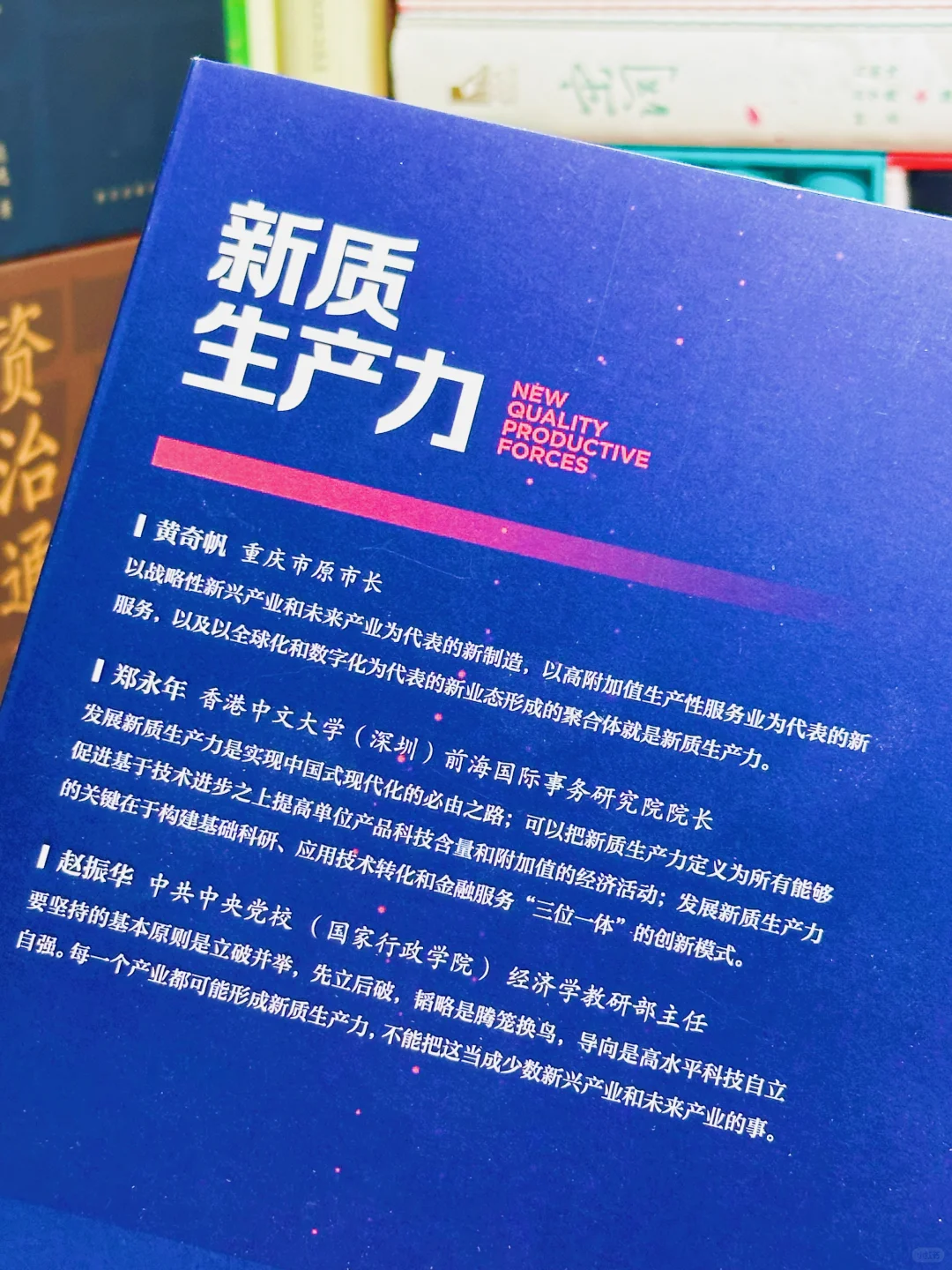🌊为探索新质生产力的发展规律,为加速形成和持续发展新质生产力提供借鉴,重庆市原市长黄 奇帆、香港中文大学(深圳)前海国际事务研究院院长郑永年、中央党校经济学教研部教授赵振华等国内权威专家学者共同撰写了《新质生产力》一书,为我们更深刻地把握时代命脉,理解当下社会变革机遇提供了思路。