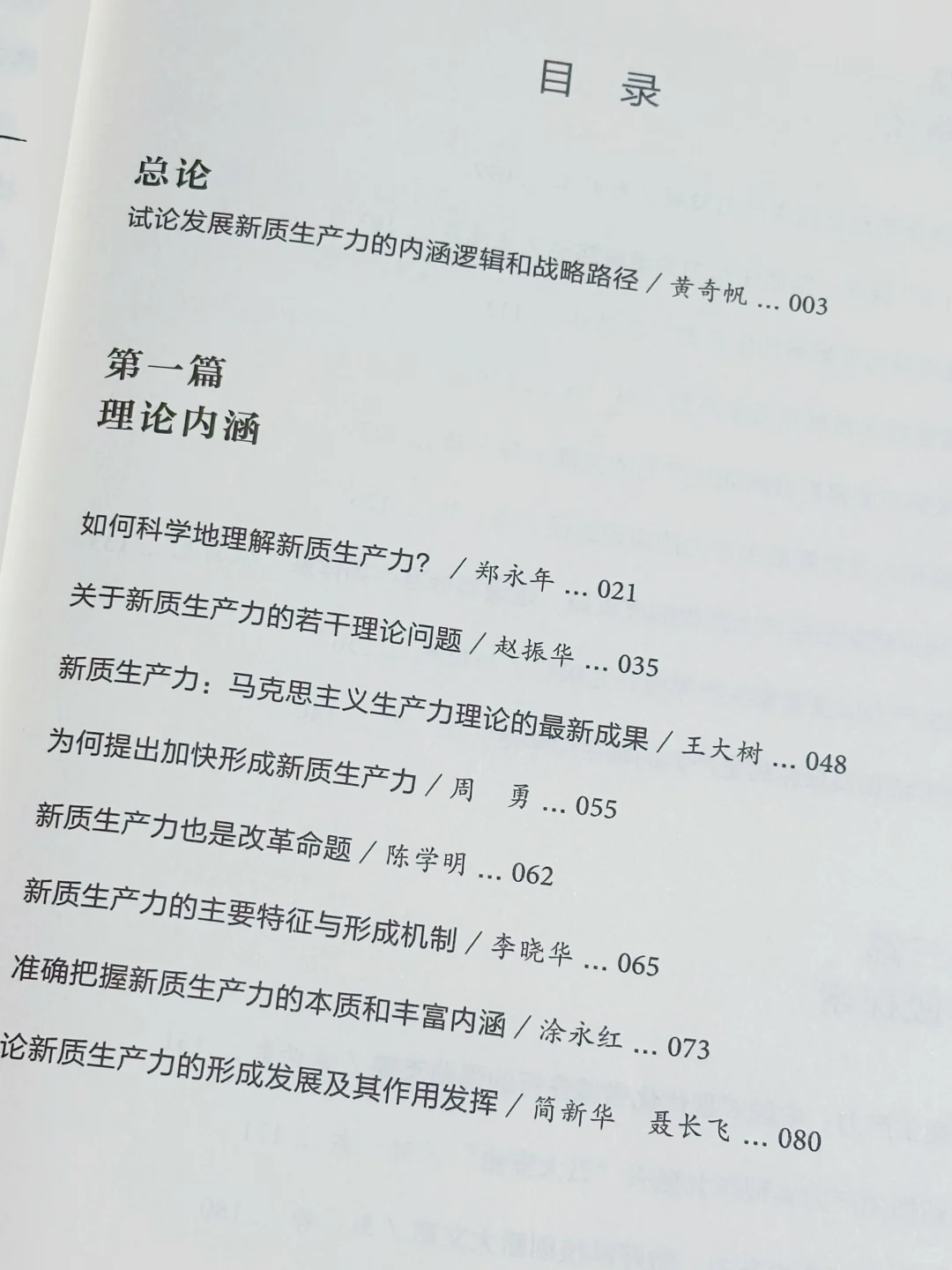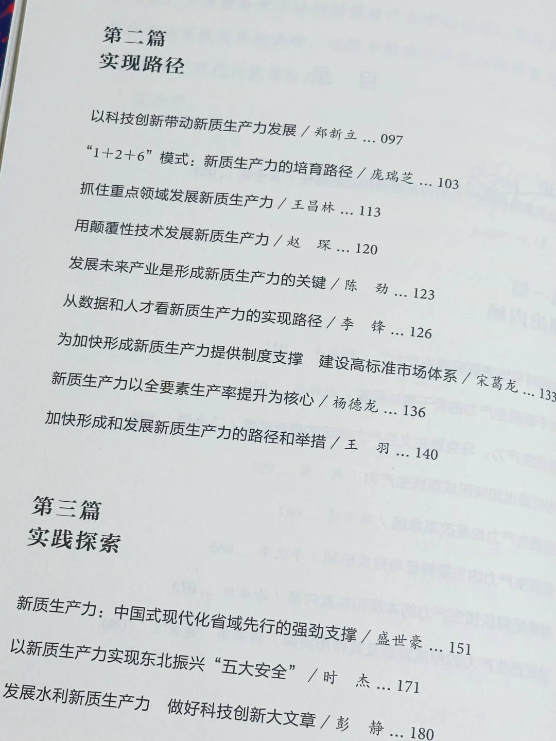 🔖全书从理论内涵、实现路径、实践探索三部分展开,集中了学界有关新质生产力的最新理论研究成果,同时呈现当前部分省域、行业在发展新质生产力上的实践先行探索等理论实践相结合,为当前备受关注的新质生产力理论总结、发展方向、实践推进等提供有效参考。