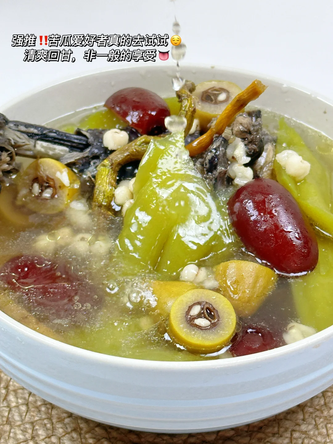 4️⃣最后下苦瓜继续煲20分钟,出锅前加适量盐调味✅