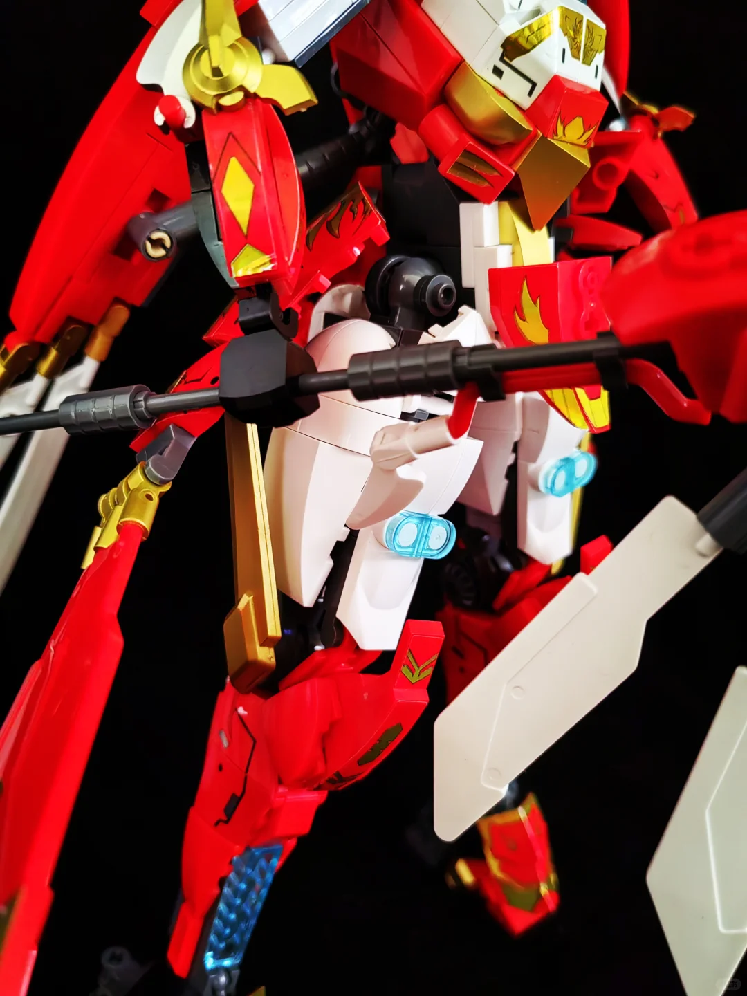 ✔️✔️✔️朱雀是烈焰圣兽,所以是耀眼的红色为主体。烈焰双翅,整体姿态挺拔优美!"炽羽煽焰,涅槃造世",朱雀手臂机甲刚猛有力,身上耀眼的白羽和两旁的红羽层层叠叠灵动飘逸。朱雀的武器叫"陵光杖",造型可以单手持也可双手拿。