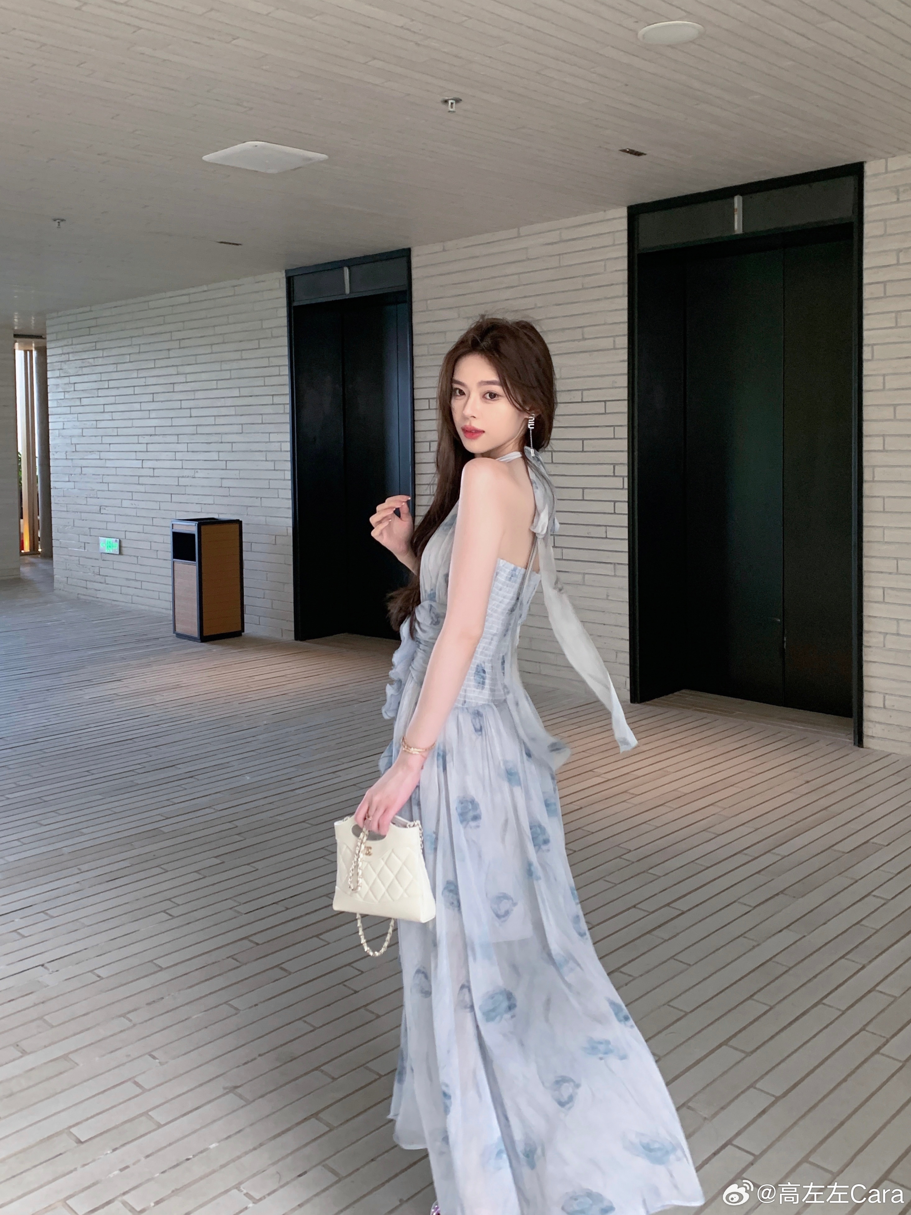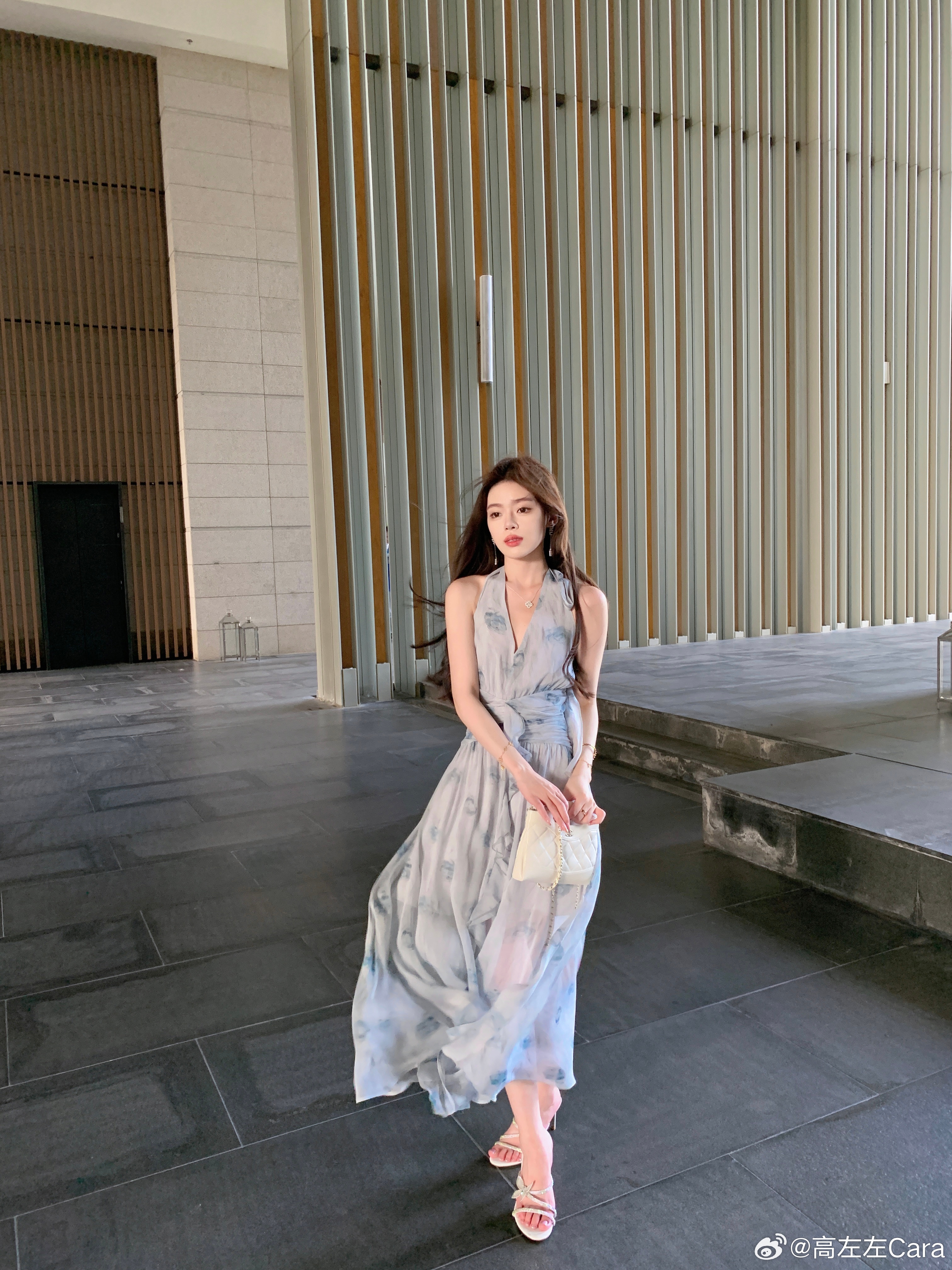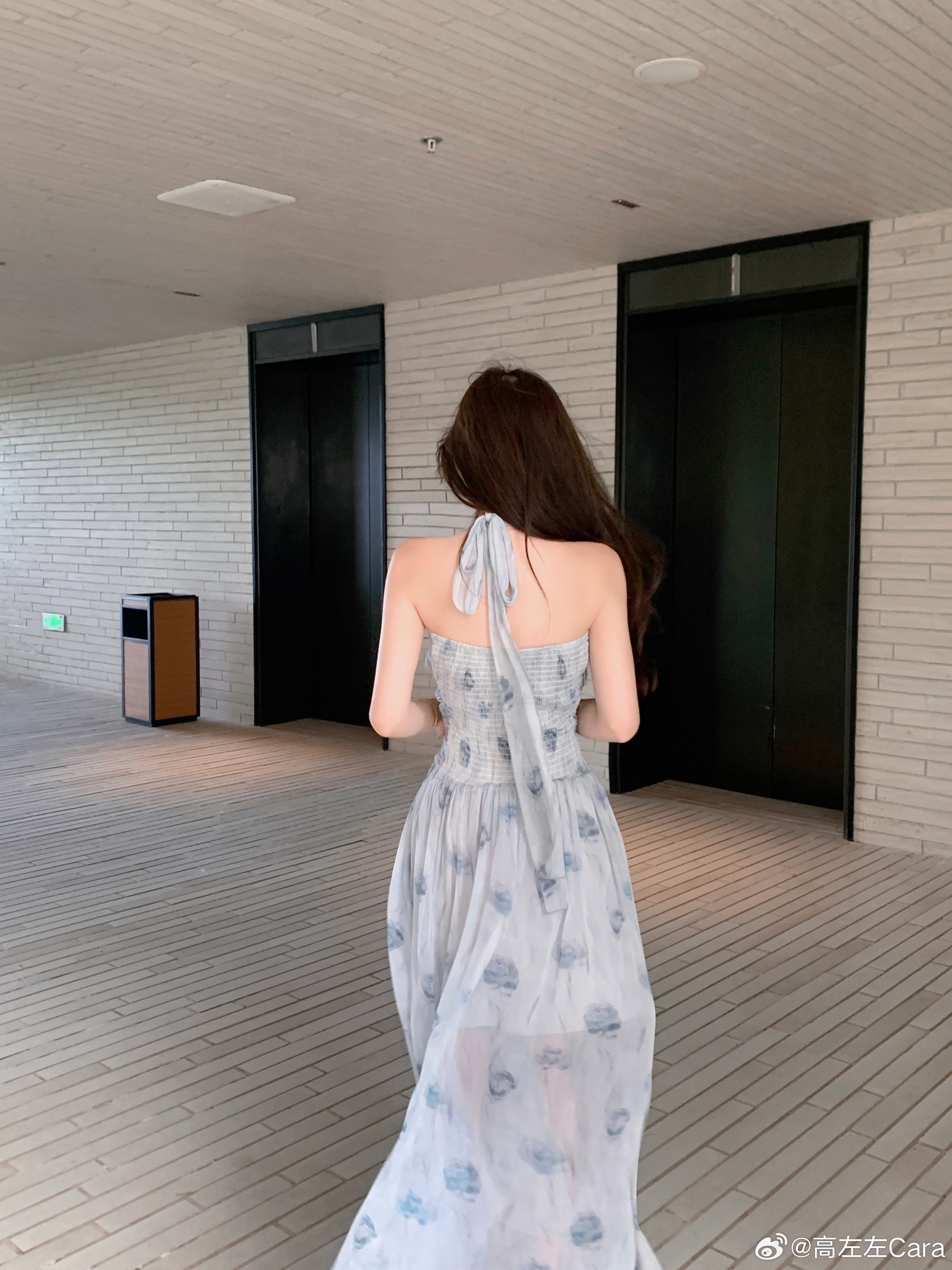 已经偷偷的准备好了~[挤眼]01 独家原创设计 远山如黛天青色冷白皮写意碎花连衣