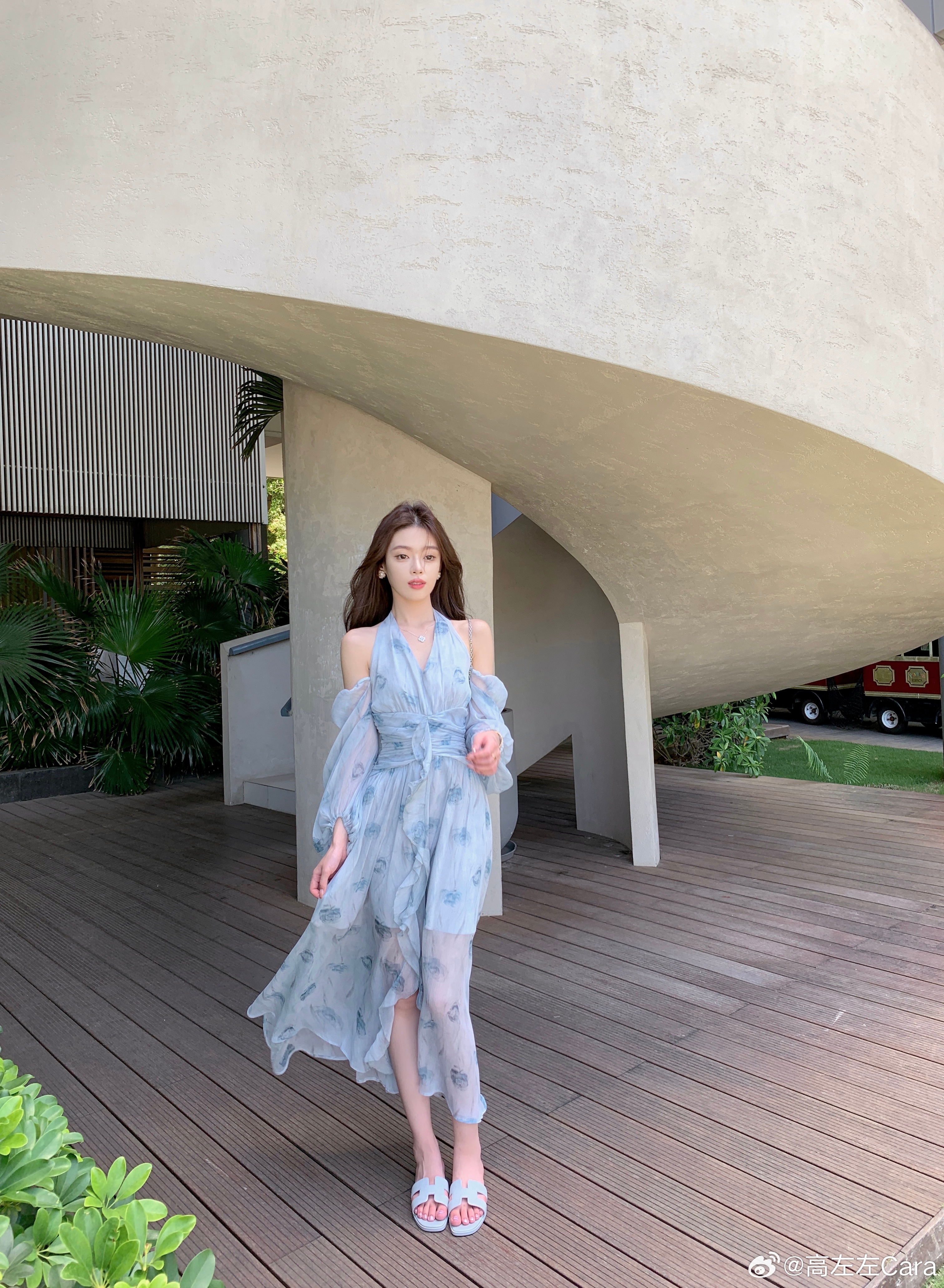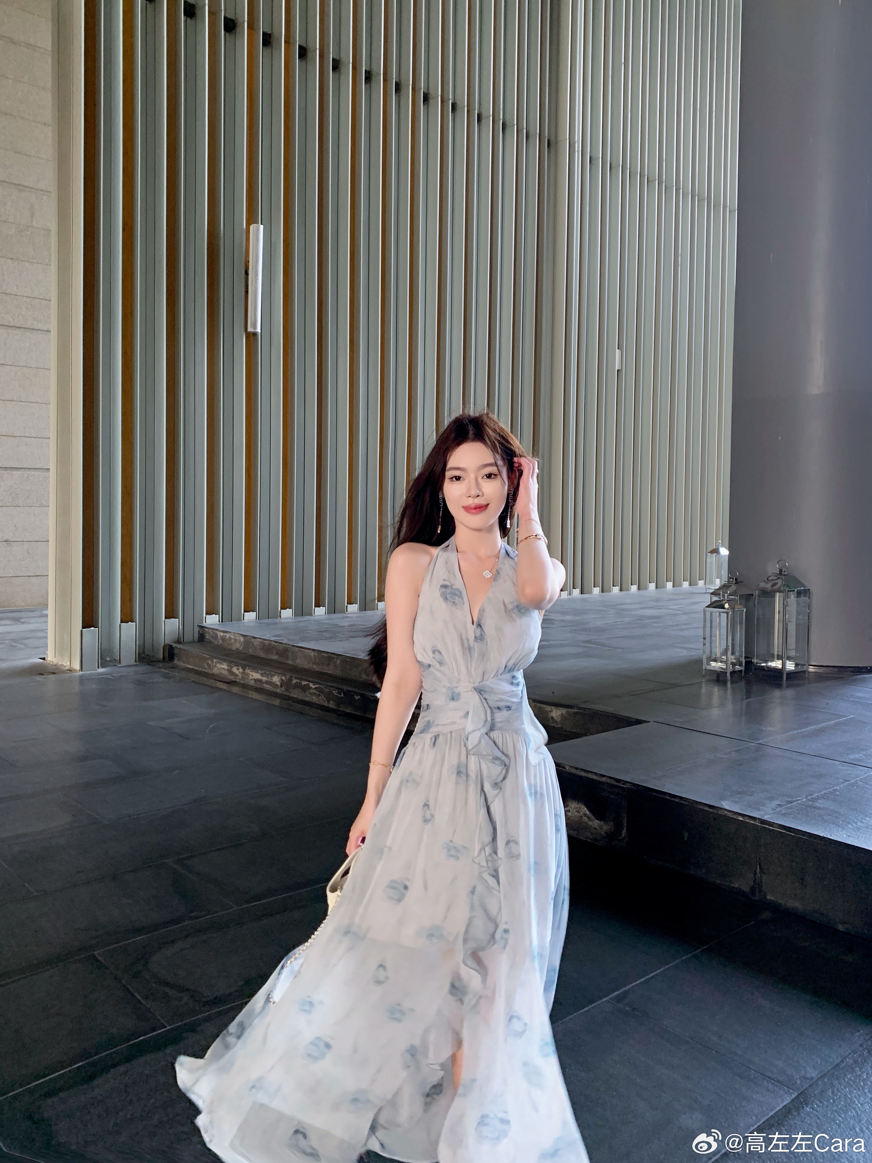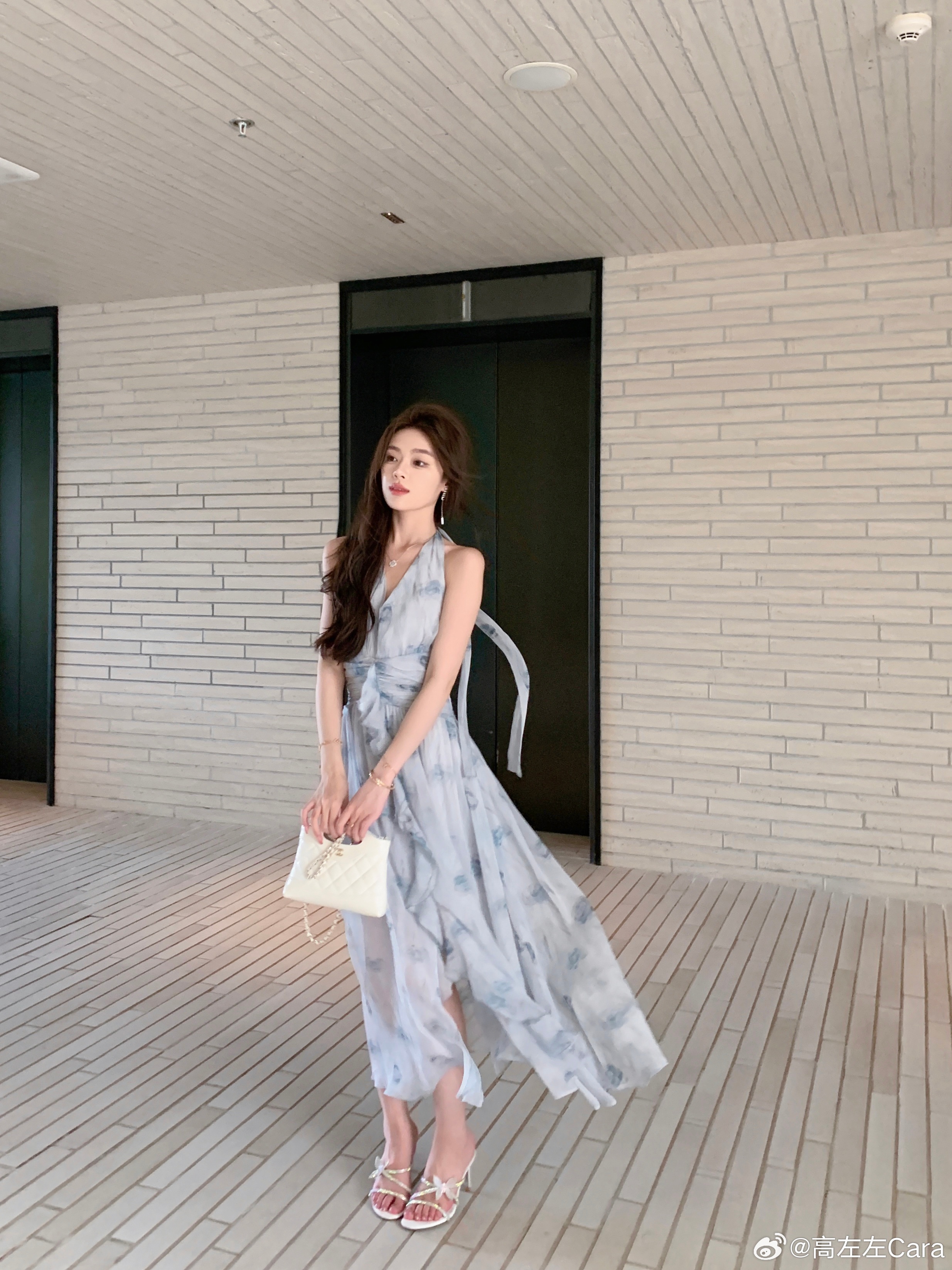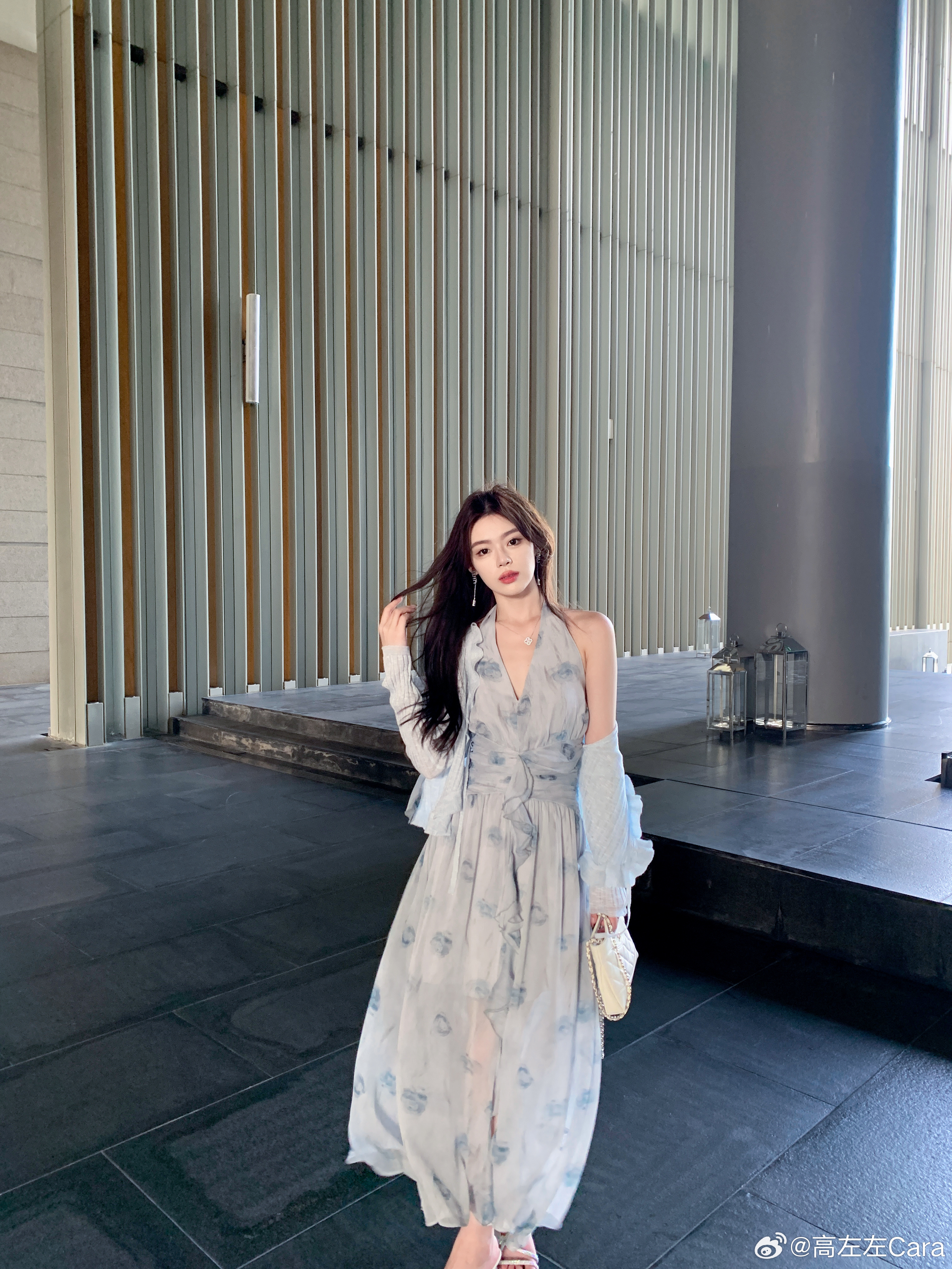 已经偷偷的准备好了~[挤眼]01 独家原创设计 远山如黛天青色冷白皮写意碎花连衣