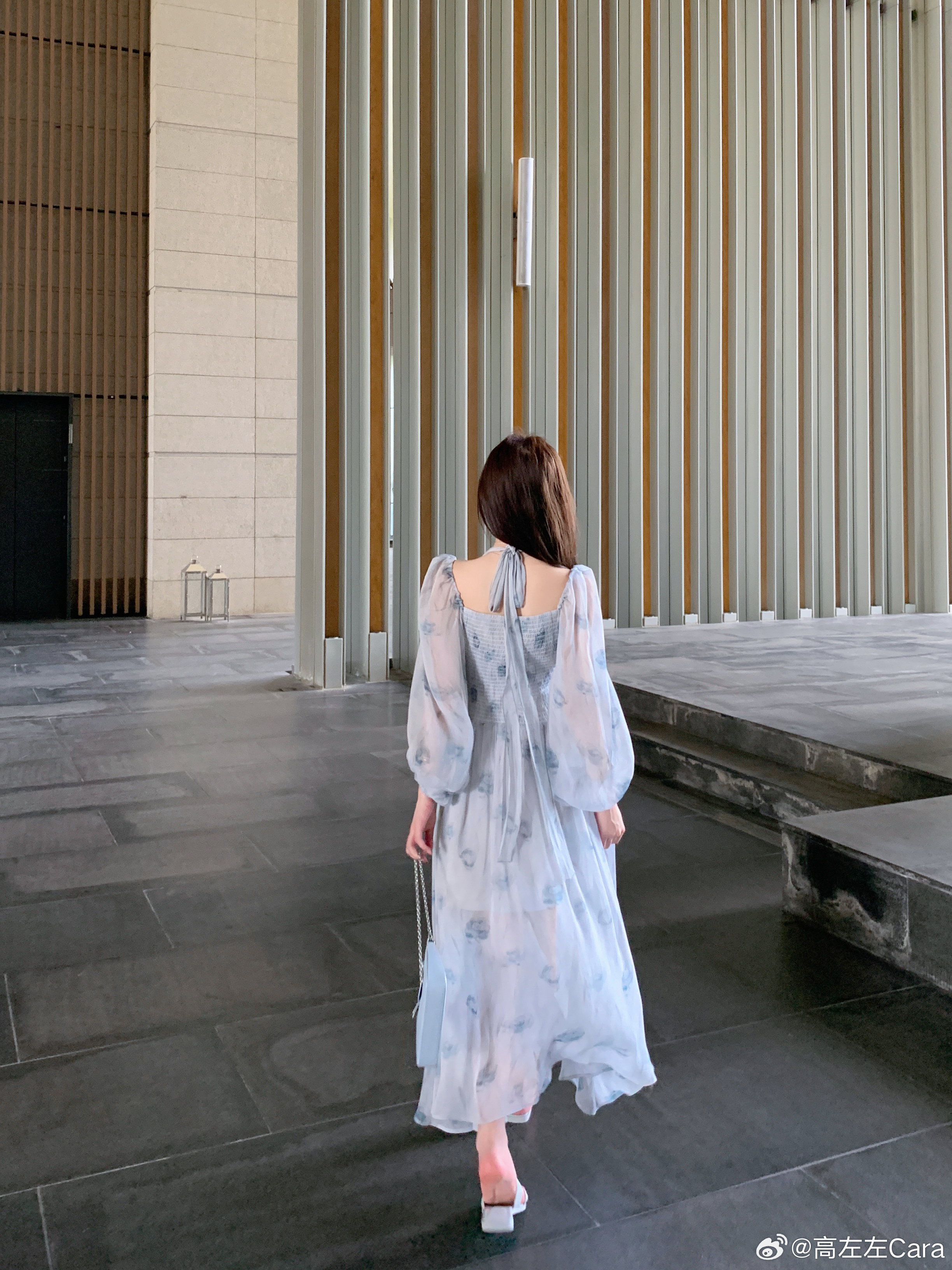 01 独家原创设计 远山如黛天青色冷白皮写意碎花连衣裙
