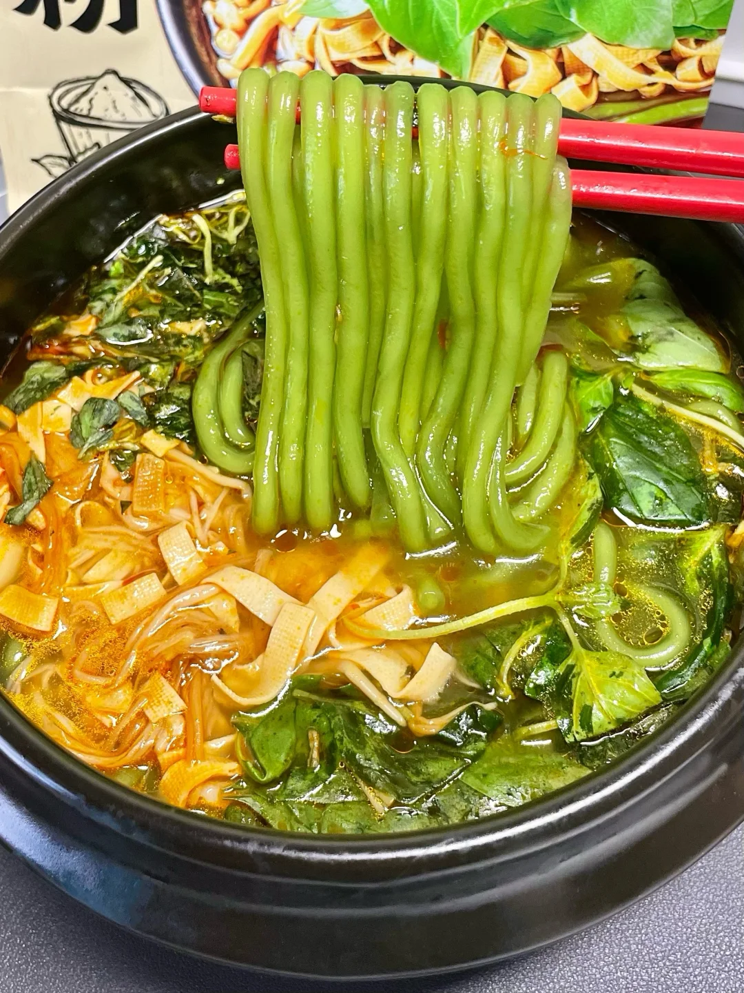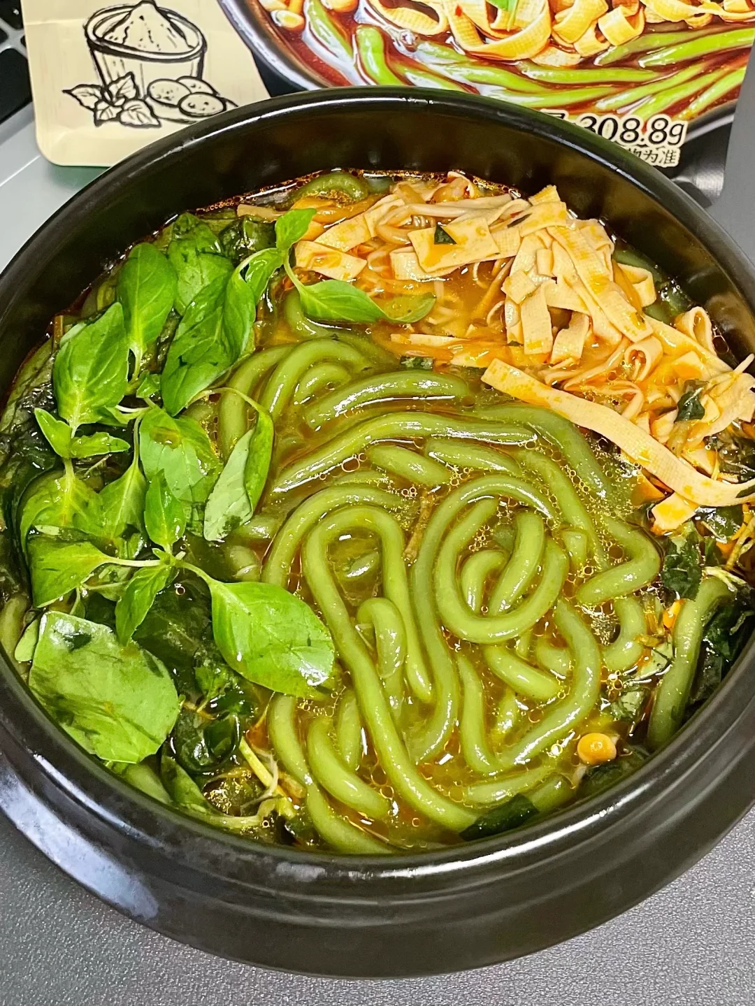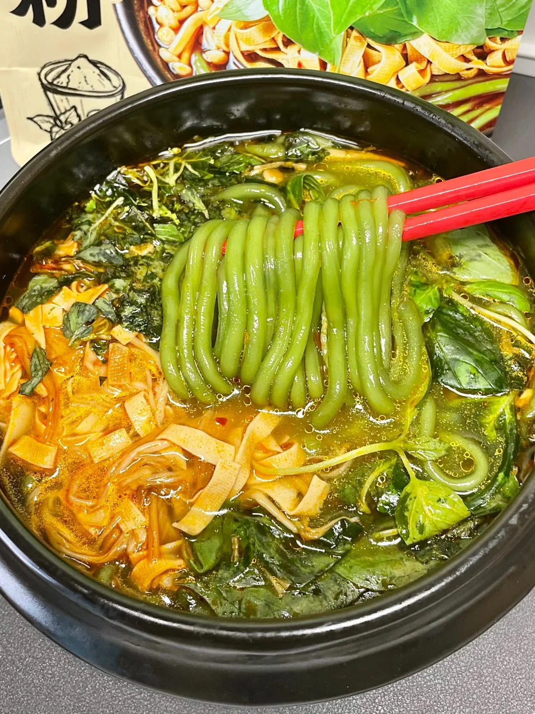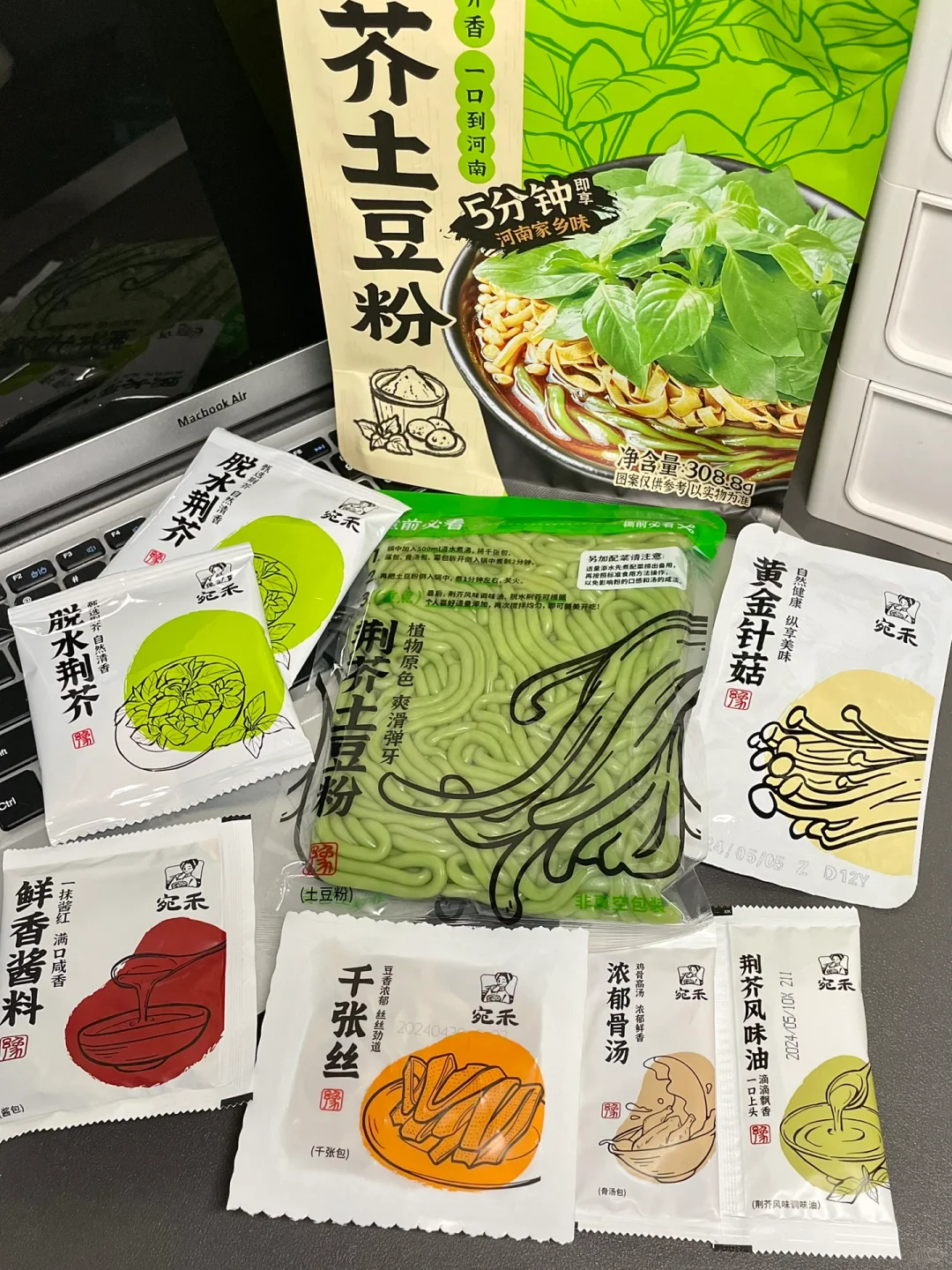 谁让你这么懂河南人的!! 速食算是被你玩明白了!竟然出了荆芥土豆粉! 加了菠菜粉🥬和荆芥粉的鲜粉 绿油油的,自带荆芥清香~ 煮好以后淋上荆芥风味油!和2包脱水荆芥! 我还自己加了一把新鲜荆芥! 尊嘟上头啊啊啊!!!不懂荆芥的有难了!! 配合老母鸡汤,糯叽叽一口入魂!😆 妥妥家乡味!不说了我要去种荆芥了!!