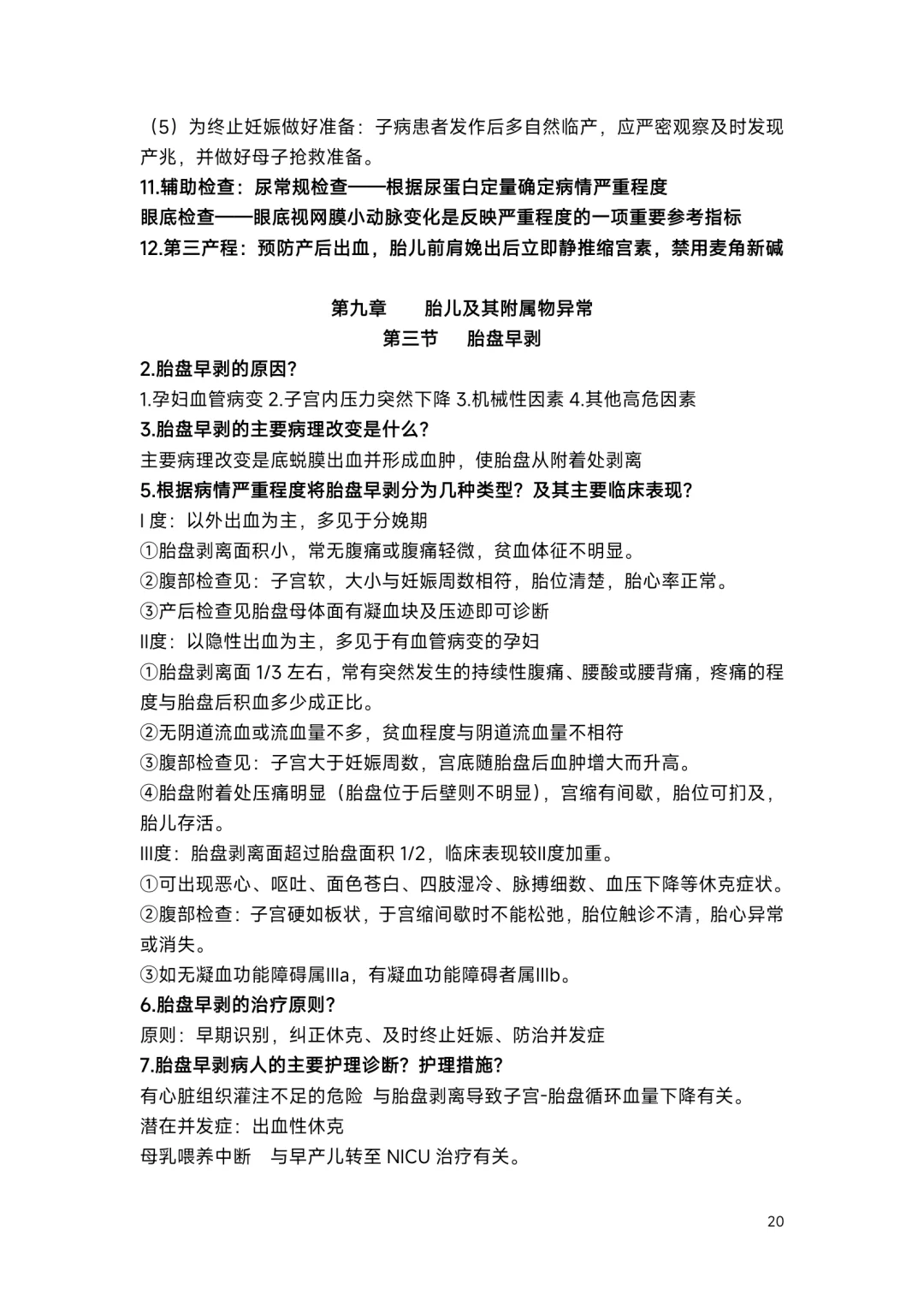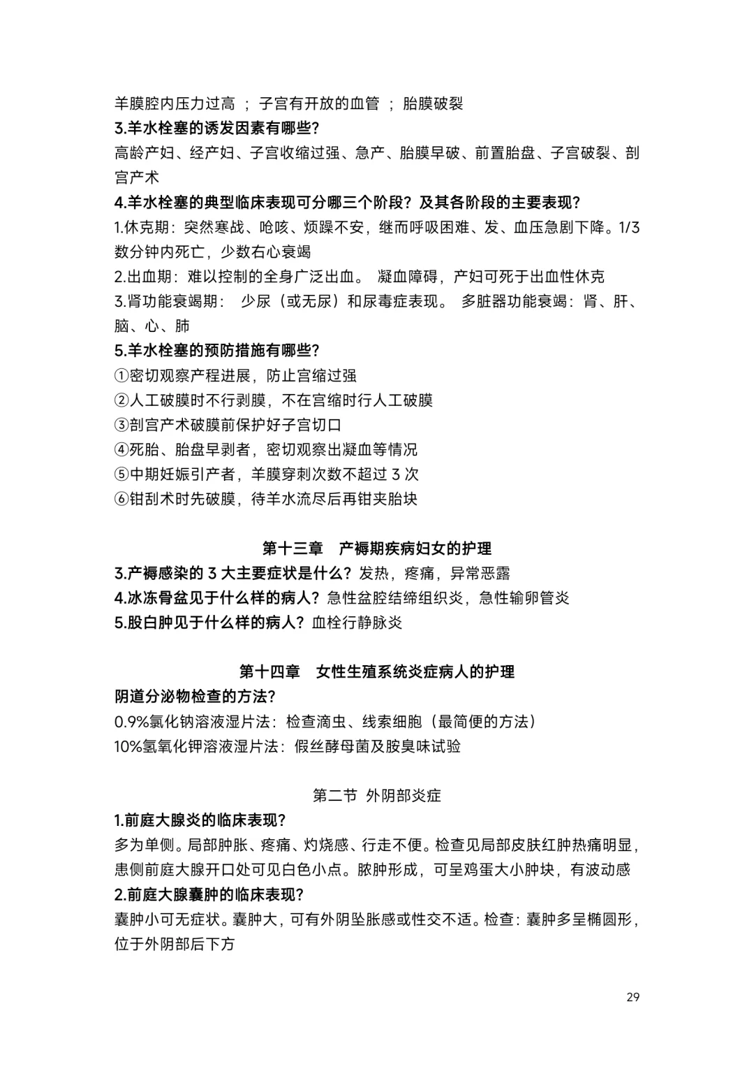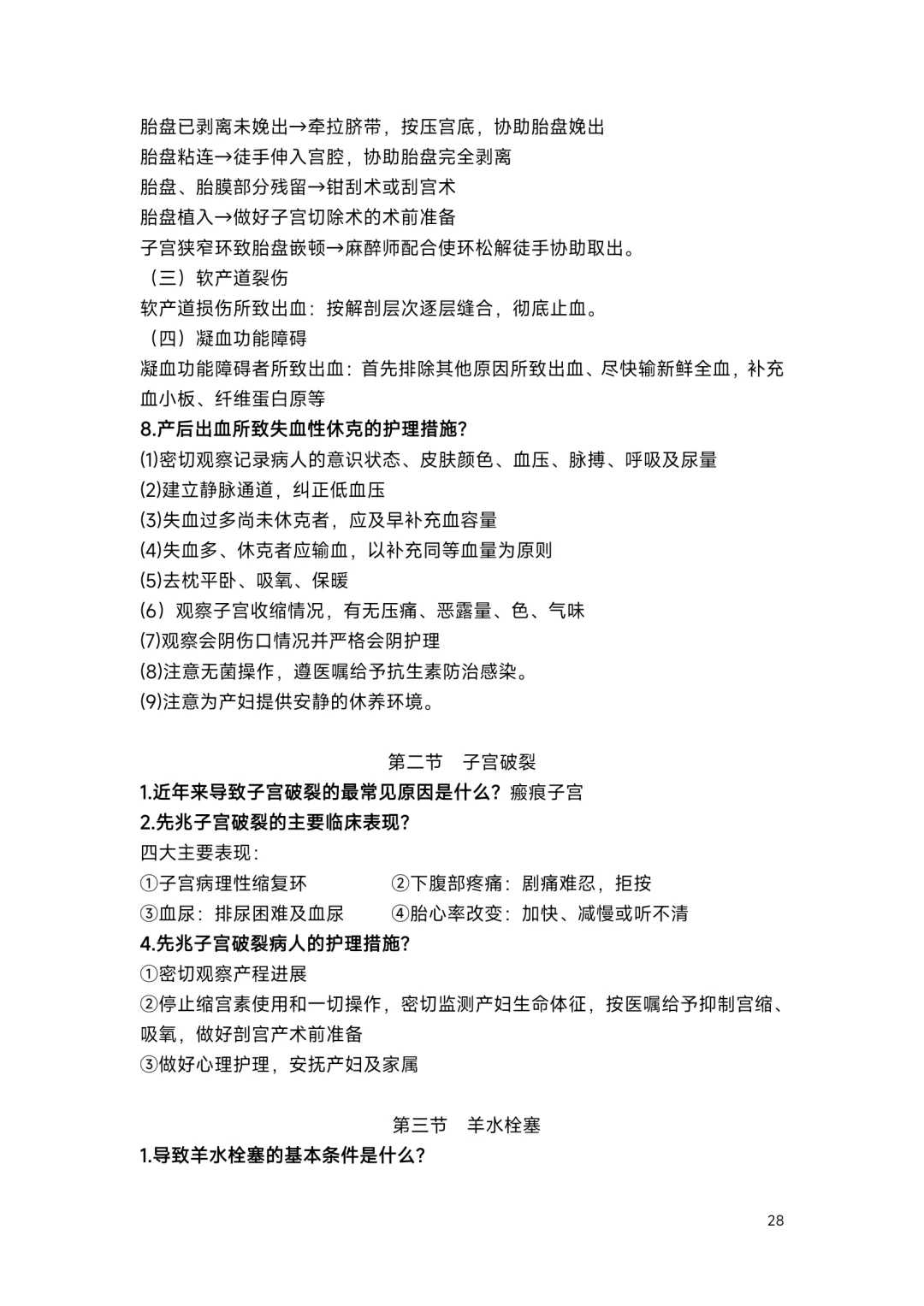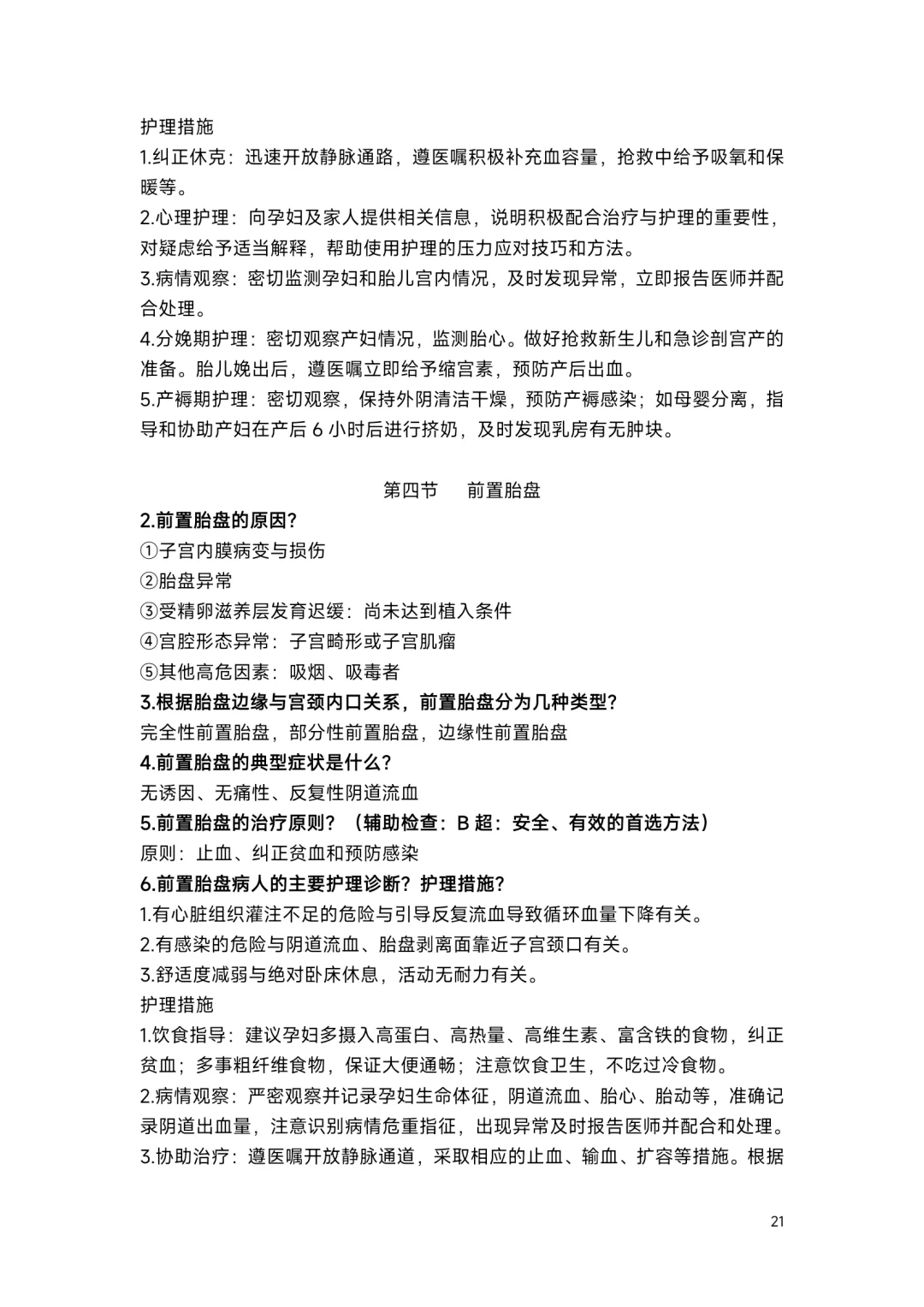 妇产科护理学 妇产科学 护理事业编 护理 知识点总结