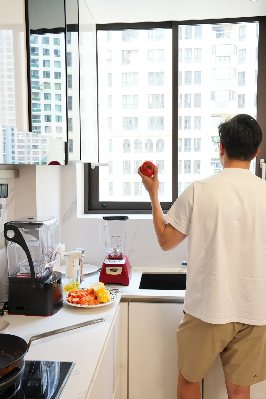 我的厨房是每一个来我家的人都想要去探索的地方,小众的调料,好用的锅具,每一个我都如数家珍。我常把我的厨房比喻成我的实验室,每一个食材都有它无线的可能性,而我在我的厨房里创造这种可能性。厨房对我来说,就是有这种魔力。