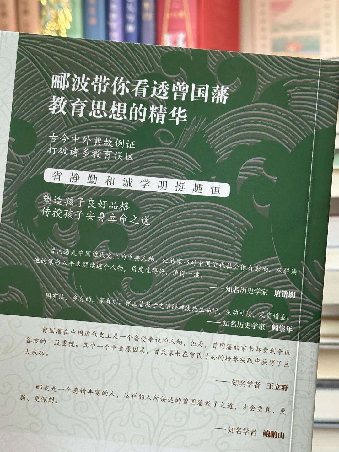 郦波老师集多载之思,在这本书中对曾国藩的教育智慧进行了深入的剖析,从教育孩子到教育自己,从目标建立到内驱力赋能、从习惯养成到趣味生活,面面俱到,堪称育儿智慧的宝典。