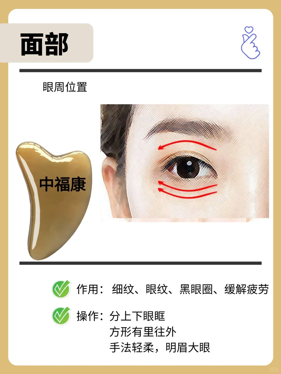 1、尖端部位:点按穴位、眼周拨筋刮痧按摩